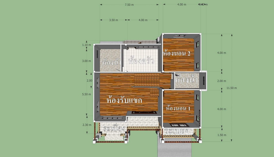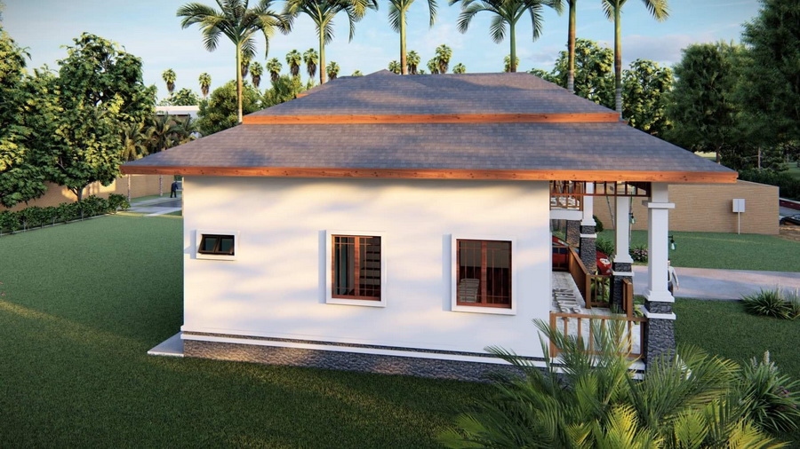 แบบบ้านหลังนี้เป็นแบบบ้านขนาดชั้นครึ่ง ตัวบ้านมีพื้นฐานโครงสร้างและวัสดุในแบบโมเดิร์นที่เรียบง่ายและมั่นคงแข็งแรง ผนังภายนอกเลือกใช้การตกแต่งด้วยโทนสีขาวครีม เพิ่มดีเทลด้วยงานไม้สีน้ำตาลอ่อน มีหลังคาสวยในทรงมะนิลาที่มุงด้วยกระเบื้องแบบเรียบ