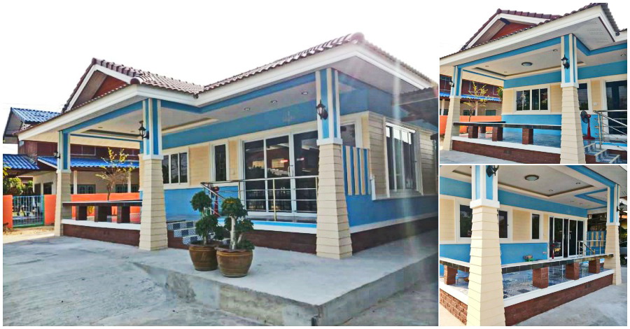 บ้านสไตล์ร่วมสมัยชั้นเดียว ประกอบไปด้วย 3 ห้องนอน 2 ห้องน้ำ ห้องโถงกลาง ห้องครัว และเฉลียงหน้าบ้าน ใช้งบประมาณในการก่อสร้าง 1.25 ล้านบาท (ไม่รวมเฟอร์นิเจอร์) หากเพื่อนๆ ชาวเว็บท่านไหนสนใจก็ลองสอบถามรายละเอียดเพิ่มเติมจากที่มาด้านล่างนี้ดูก่อนได้นะคะ