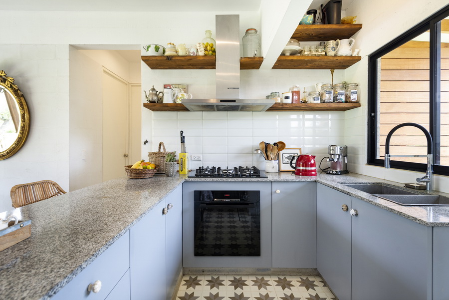 สำหรับห้องครัวของบ้าน จะมีกลิ่นอายแบบวิเทจ ให้บรรยากาศที่อ่อนโยนสบายตา ซึ่งมาพร้อมกับสิ่งอำนวยความสะดวกที่ครบถ้วนทุกการใช้งานเลยทีเดียว
