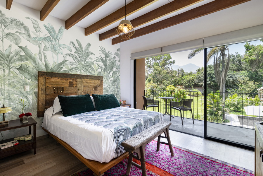 สำหรับห้องนอนนั้น เป็นอีกห้องที่จะเน้นความโปร่งโล่ง ภายในตกแต่งอย่างเรียบง่าย มีผนังกระจกที่ให้ทิวทัศน์ธรรมชาติภายนอกได้อย่างสวยงาม