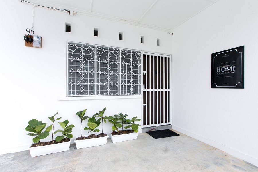 ก่อนที่เราจะเข้าไปภายในตัวบ้าน บริเวณทางเข้าบ้านก็เป็นอีกจุดหนึ่งที่น่าสนใจ ไล่กันไปตั้งแต่ลูกกรงเหล็กของบ้านที่มีลวดลายสวยงามในโทนสีขาว ด้านล่างมีต้นไม้สวย ๆ ไว้ช่วยให้ความสดชื่นแก่บ้าน