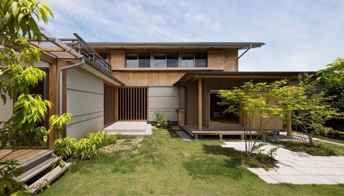 บ้านหลังนี้ก่อสร้างขึ้นที่จังหวัดซะงะ ประเทศญี่ปุ่น มีลักษณะเป็นรูปตัวแอล (L-Shape) โครงสร้างปูนผสมผสานเข้ากับวัสดุไม้สน ประกอบเป็นเส้นสายทรงเลี่ยมที่ให้ดีไซน์ทันสมัย แต่ก็ยังคงพื้นที่ใช้งานตามแบบฉบับญี่ปุ่นดั้งเดิมเอาไว้ คลุ้งไปด้วยกลิ่นอายธรรมชาติจากสวนสีเขียวสดที่รายล้อมอยู่นอกบ้าน