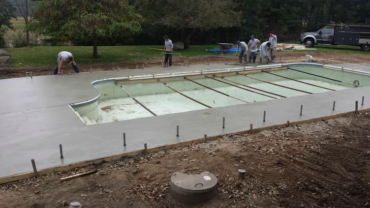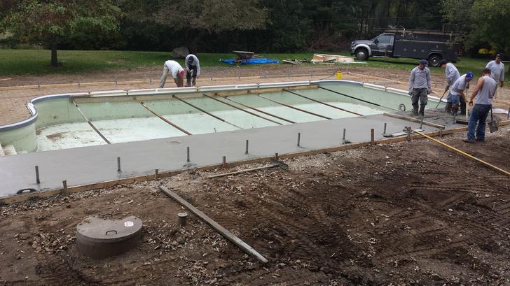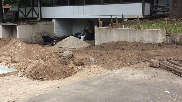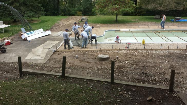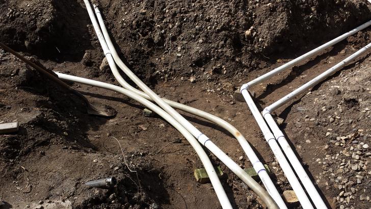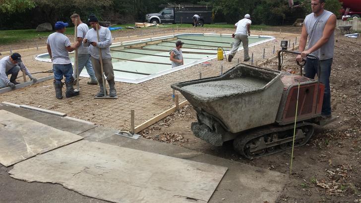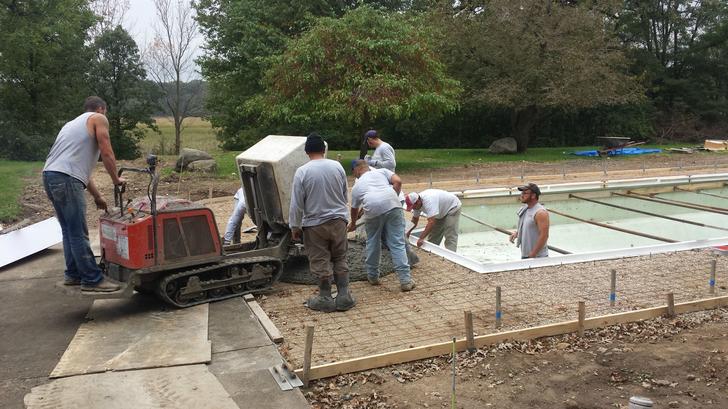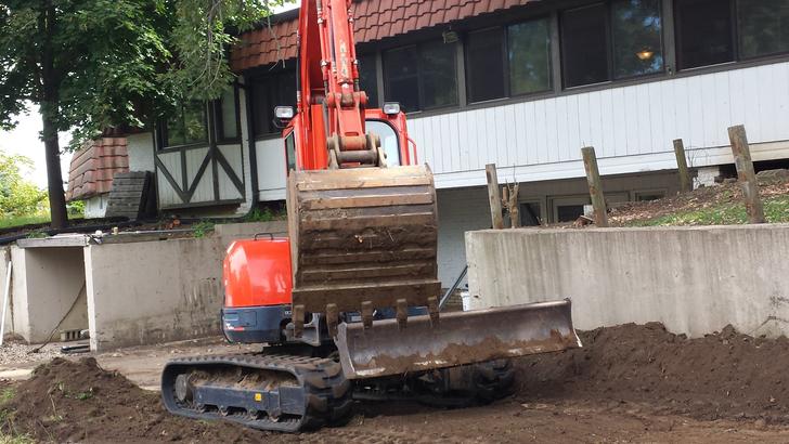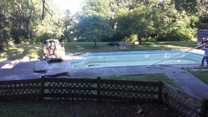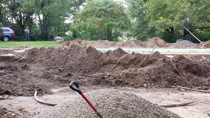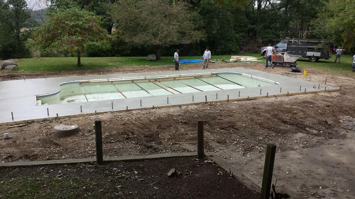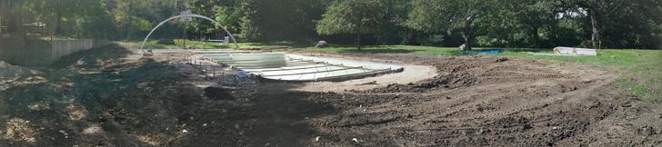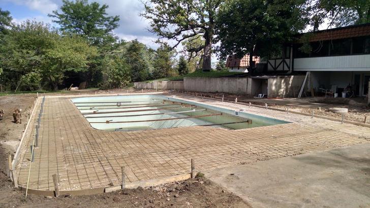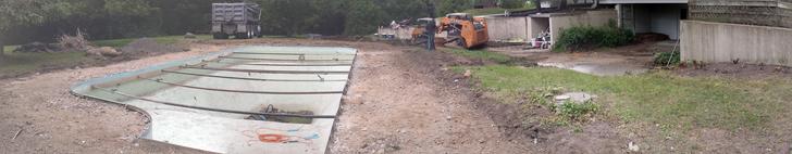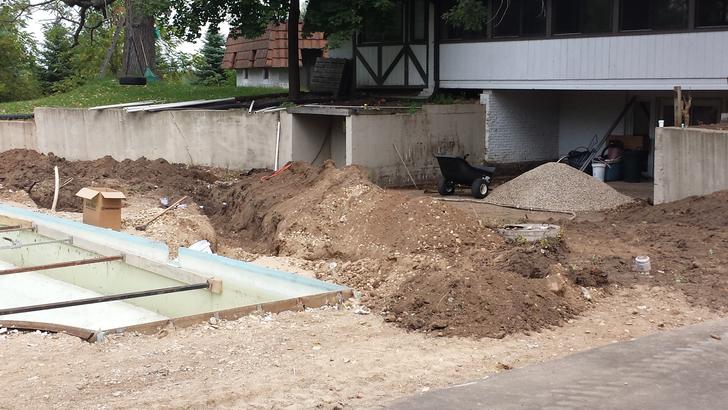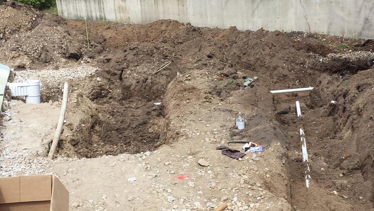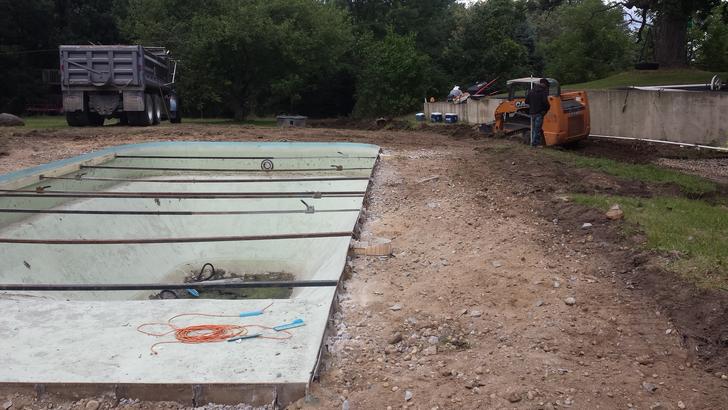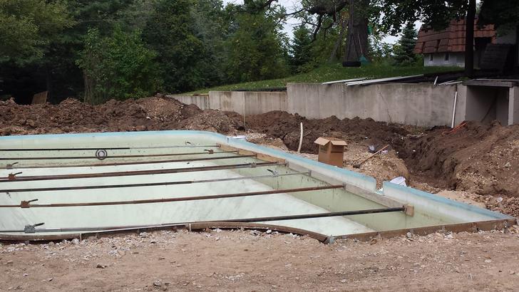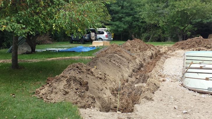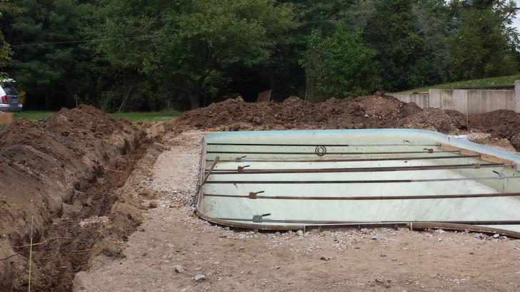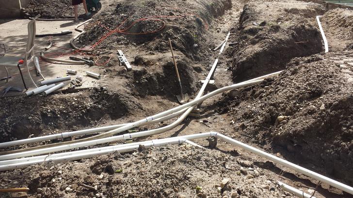 เริ่มต้นขุดแนวท่อสำหรับสระว่ายน้ำ