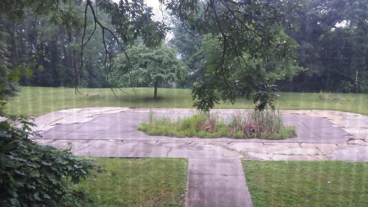 ทีนี้เรามาดูภาพบรรยากาศก่อนการรีโนเวทกันเลย มุมนี้เป็นบริเวณทางเข้า แน่นอนว่าขนาดทางเข้ายังรกขนาดนี้ ตัวสระแย่กว่านี้แน่นอน