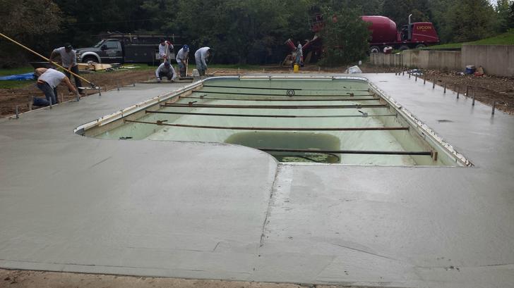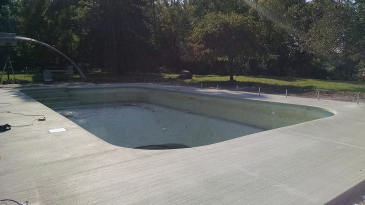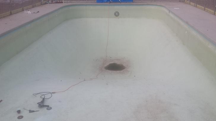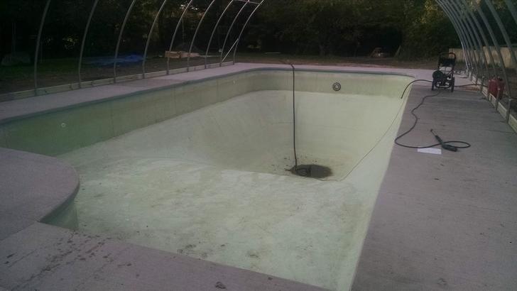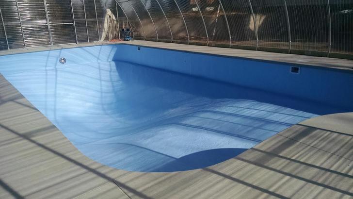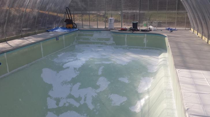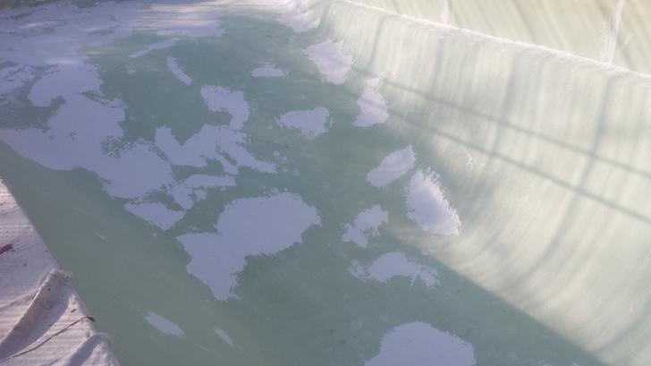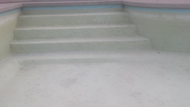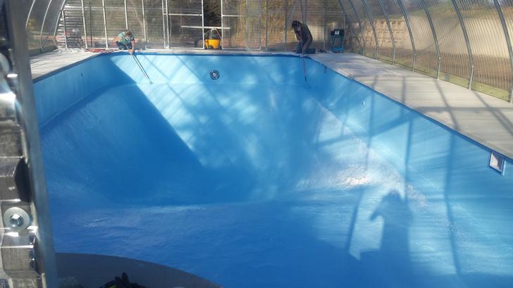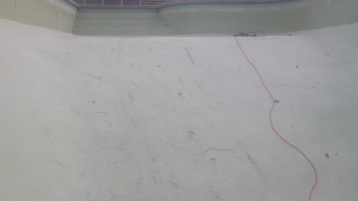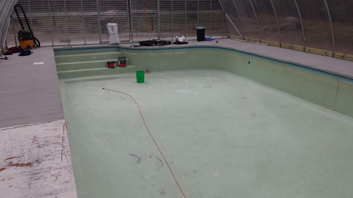 ในขณะที่ตัวสระถูกเคลือบด้วยอีพร็อกซี่ ไฟเบอร์กลาสและพลาสเตอร์