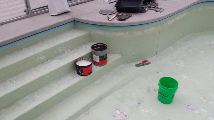 เริ่มฉาบอีพร็อกซี่ให้กับสระ