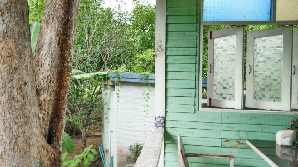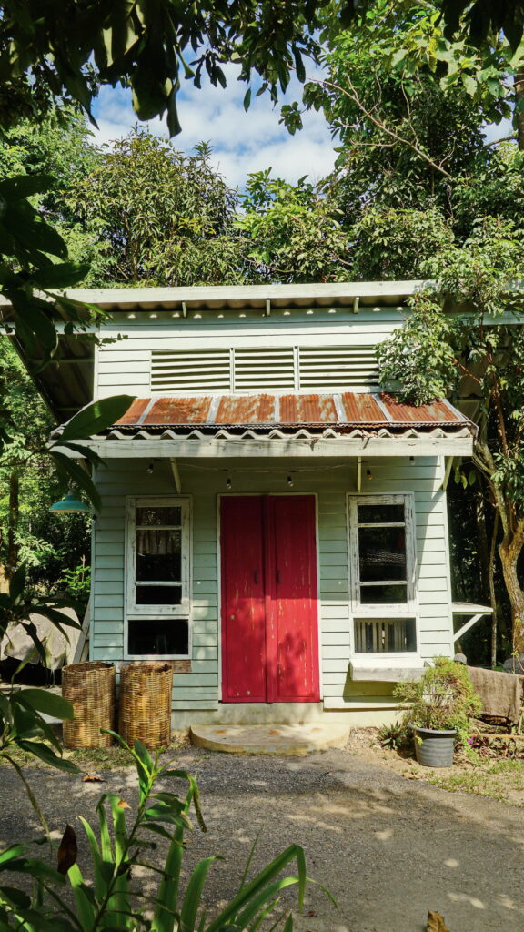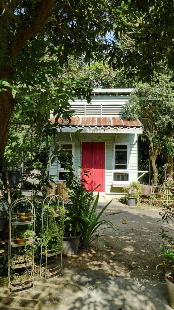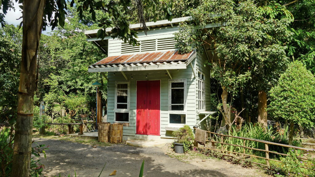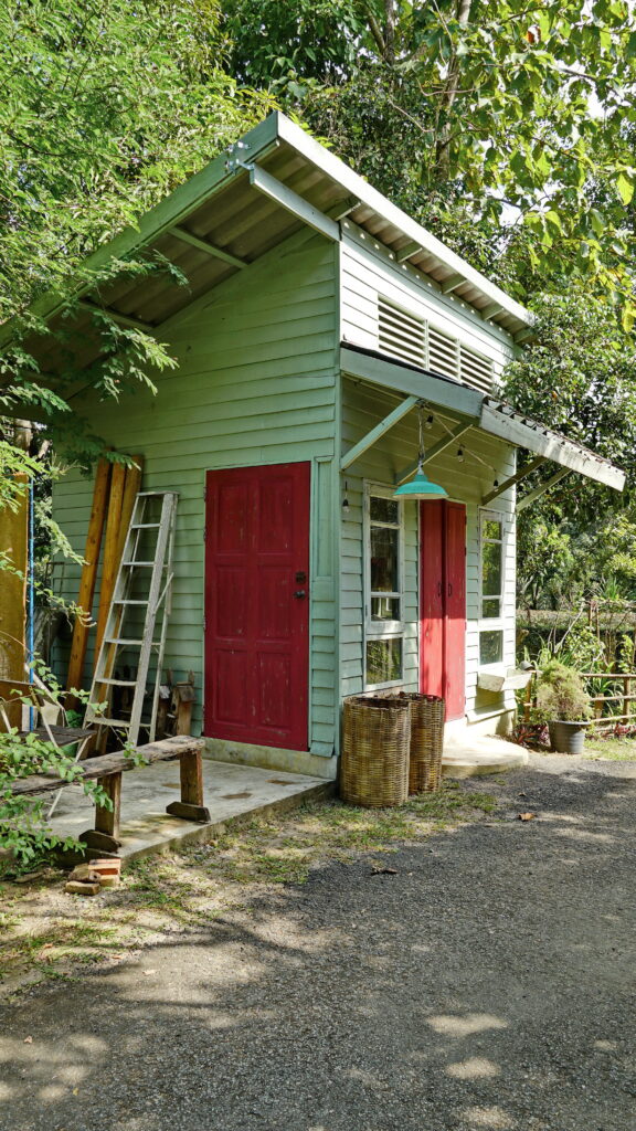 อาคารหลังต่อมาเป็นอาคารไม้ดีไซน์เรียบง่าย มีผนังเป็นแผ่นไม้ในโทนสีออกเขียวมิ้นต์ โดดเด่นด้วยประตูสีแดงสดใส โดยรวมแล้วเป็นฉากหลังที่สวยงามหากจะมาถ่ายรูปบริเวณนี้