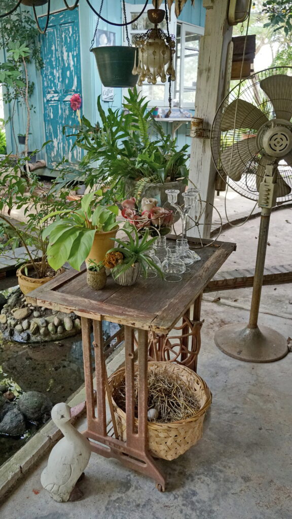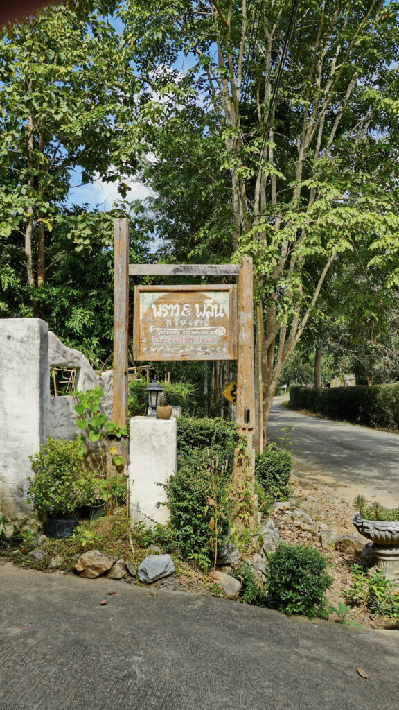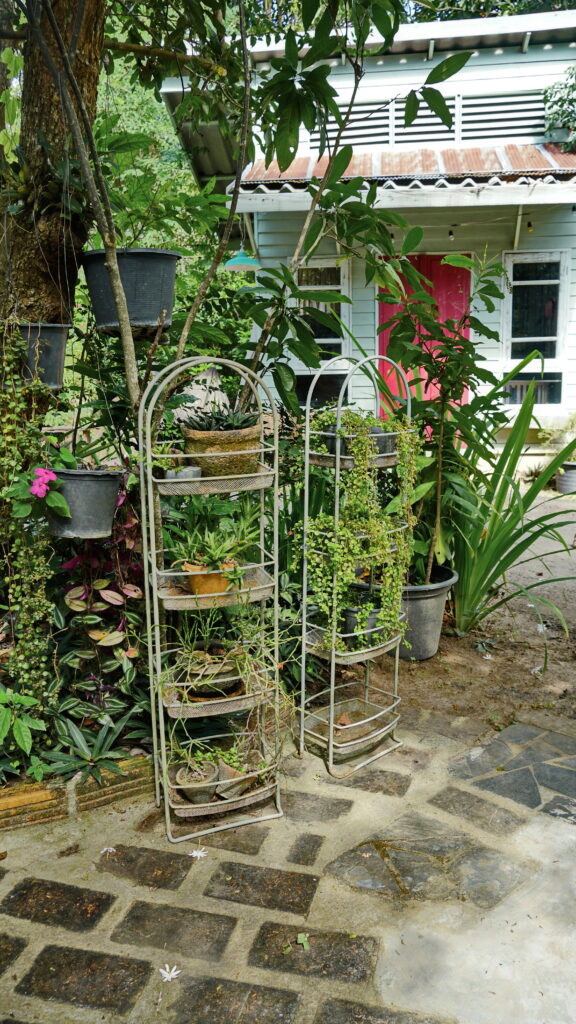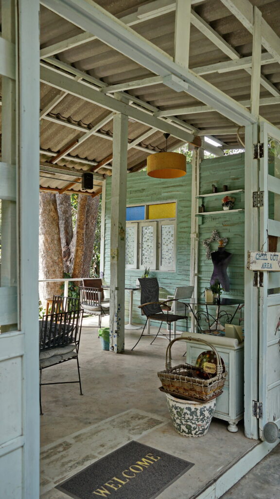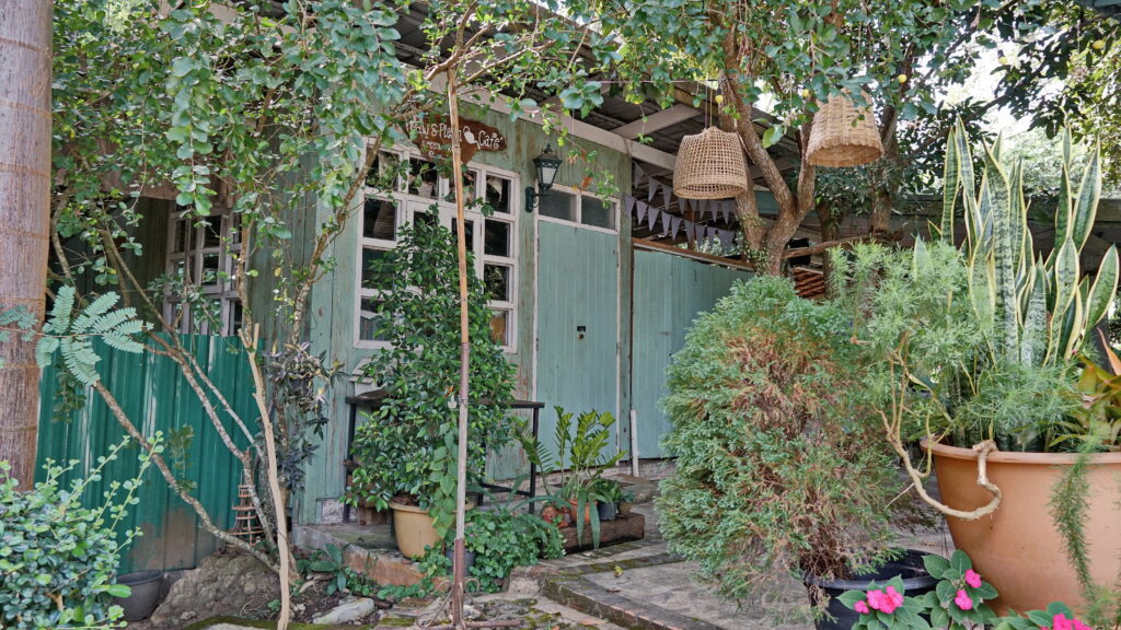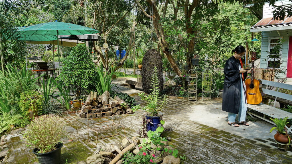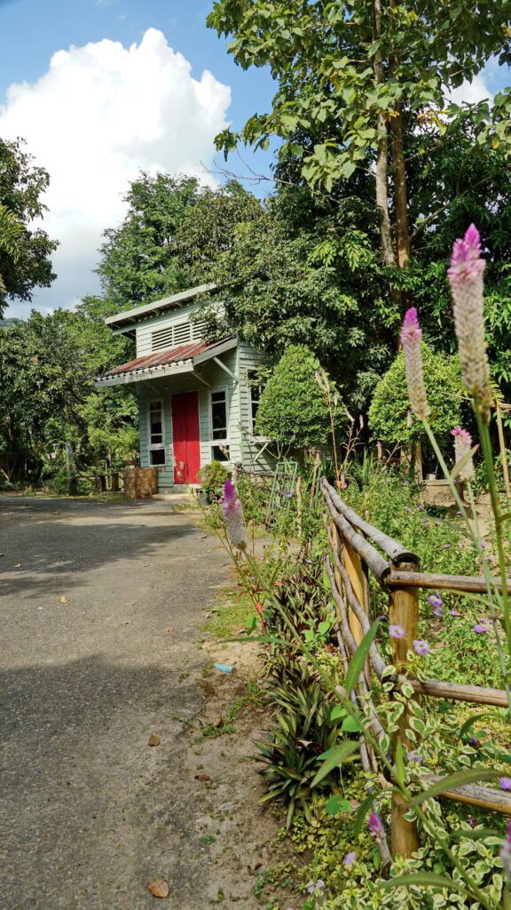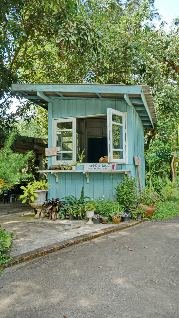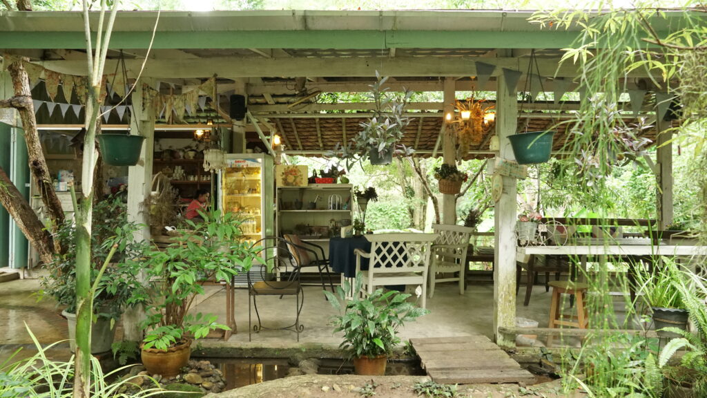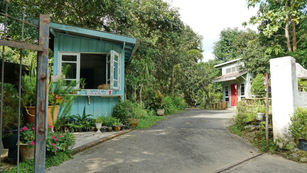 ที่บริเวณทางเข้าร้าน เราจะพบกับถนนเส้นเล็ก ๆ ที่นำเราเข้าไปสู่อาณาบริเวณของคาเฟ่แห่งนี้ ซึ่งก็ให้บรรยากาศแบบบ้านสวนต่างจังหวัด