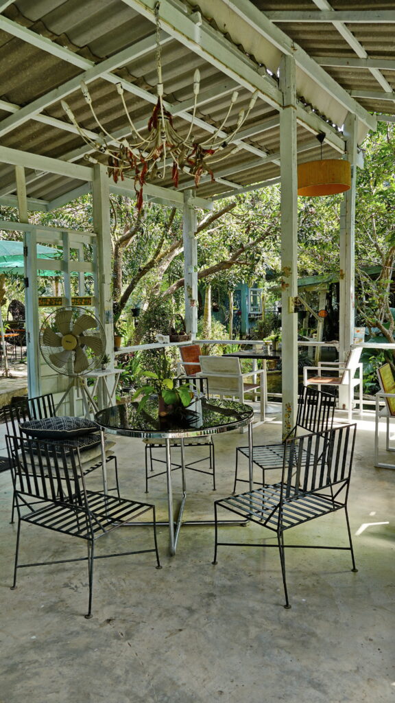 พื้นที่ส่วนกลางของร้าน เป็นอีกมุมสำหรับนั่งรับประทานอาหาร แต่โดดเด่นด้วยความร่วมรื่นจากต้นไม้ที่รายล้อมอยู่เต็มพื้นที่