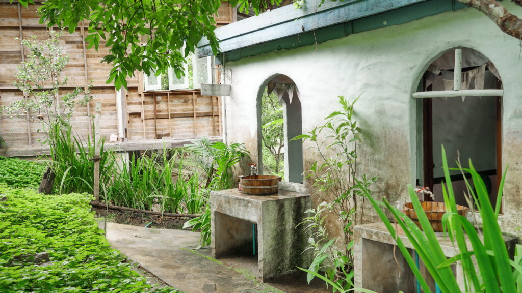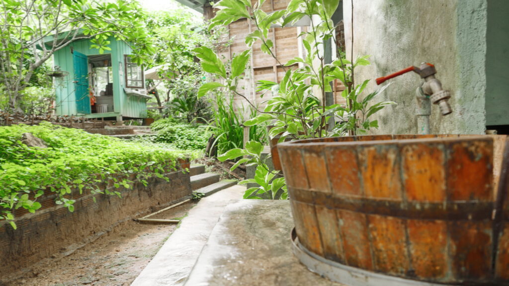เนื้อวัสดุของบ้านมีความเก่าตามธรรมชาติ ทำให้สะท้อนสไตล์แบบรัสติกออกมาได้ชัดเจน จึงกลายเป็นจุดเด่นหนึ่งของ Praw & Plean Green House