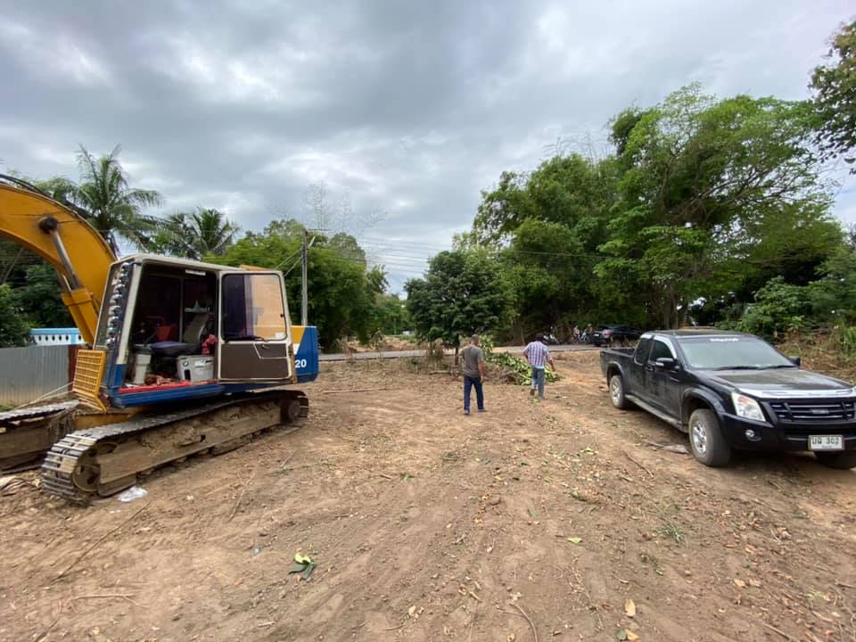หลังจากโอนได้สองวันเราวิ่งหาแม็คโครก็อยู่แถวนั้นพอดี บังเอิญจริงๆ ถูกใจคนใจร้อนวู่ว่มอย่างเรา จัดไปถาง ๆ พัง ๆ ทุกอย่างที่ขวางหน้า แต่เจ้าของเก่าขอบ้านไม้หลังที่ไว้ก่อน เค้าจะรื้อไปทำบ้าน โอเคไม่ใช่ปัญหา เราพังเฉพาะต้นไม้ ซากสังกะสี แต่เราบอกเจ้าที่เจ้าทางก่อนนะ เราเองก็กลัวอาภรรพ์