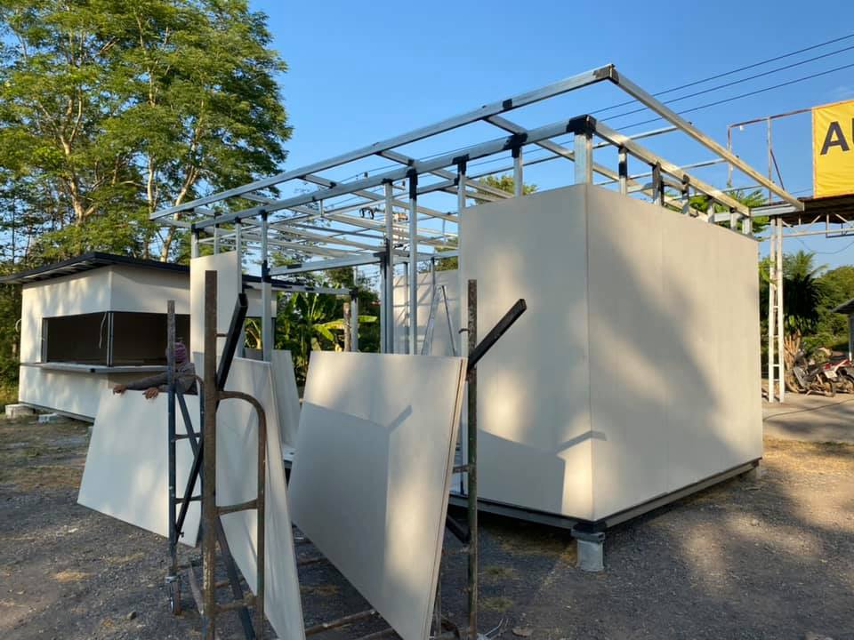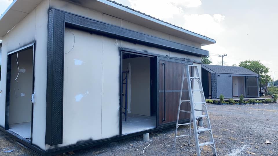 หลังจากนั้นก็เริ่มหาข้อมูลการทำบ้านน็อคดาวน์จากเฟชบุ๊ค เห็นมีทั้งคนบ่นว่าโดนหลอกโอนมัดจำบ้าง บ้านไม่เสร็จบ้าง ช้ากว่ากำหนดบ้าง คุยหลายๆที่ส่วนใหญ่จะสร้างกัน 45-60วัน เราเองพวกใจร้อนด้วย เลยผ่านๆไป มาเจอเจ้านี้ แบบสวยโดนใจและที่สำคัญส้ราวงให้เราไว รับปากกันไว้ 14 วันเสร็จแน่นอน เอาเจ้านี้แหละ