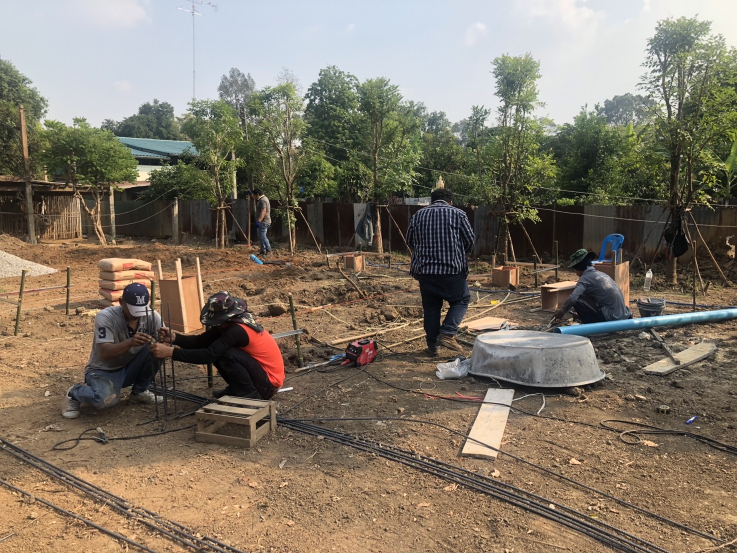เค้าก็เร่ิมเค้ามาทำฐานรากให้ แต่เราต้องเป็นคนออกค่าอุปกรณ์บ่อเกรอะถังบำบัด ถังส้วมเอง โชคดีอยู่อย่าง ที่แถวนั้นมีร้านวัศดุก่อสร้างใกล้ๆเลย อยากได้อะไรแค่โทรไปสั่งเอามาส่งค่อยจ่ายตัง ค่อนข้างสะดวก