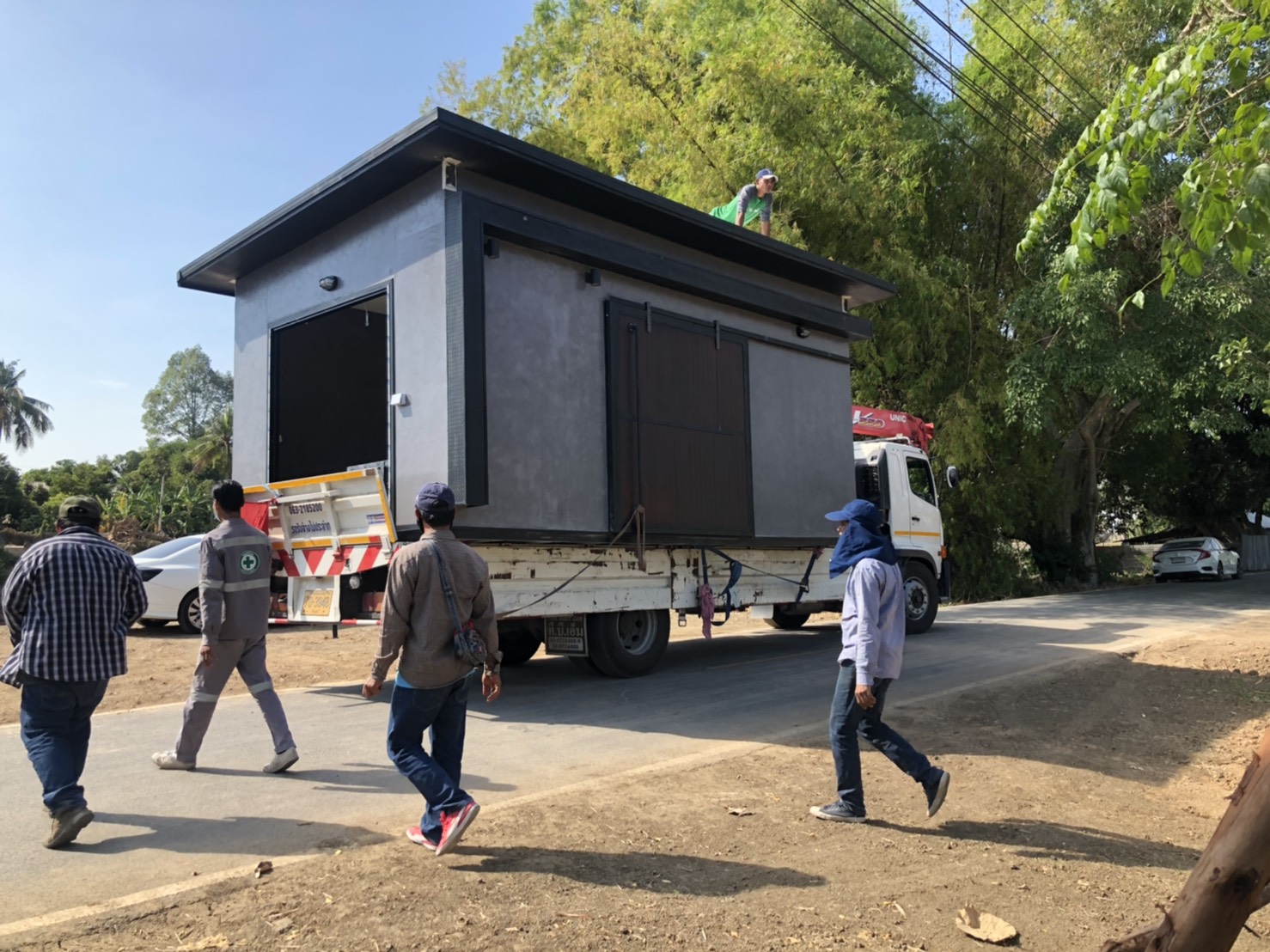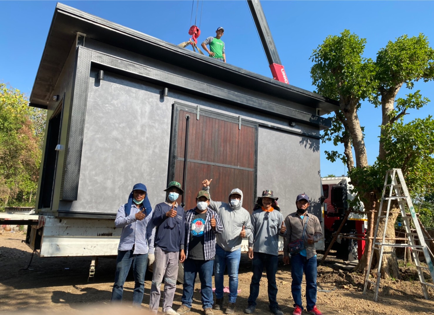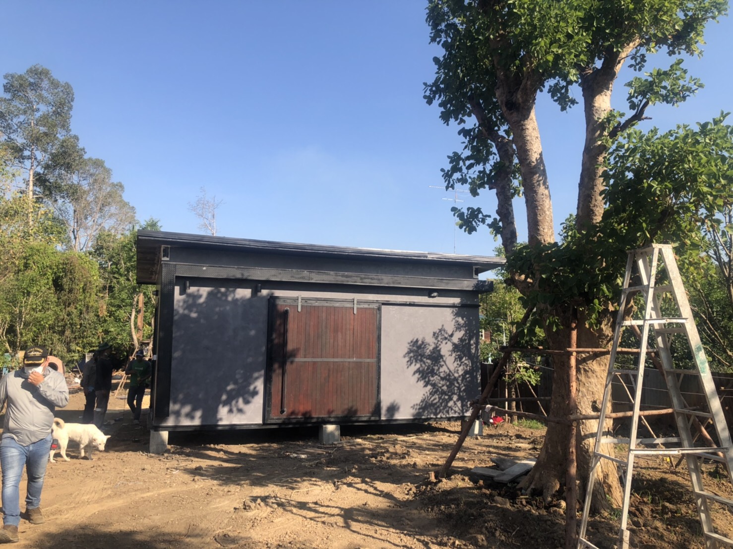 กว่าจะเอาบ้านเข้าได้ก็ลุ้นกันทีเดียว ขั้นตอนต่อไปก็เป็นการฟิตติ้งบ้านและต่อเติมระเบียงและไฟฟ้า