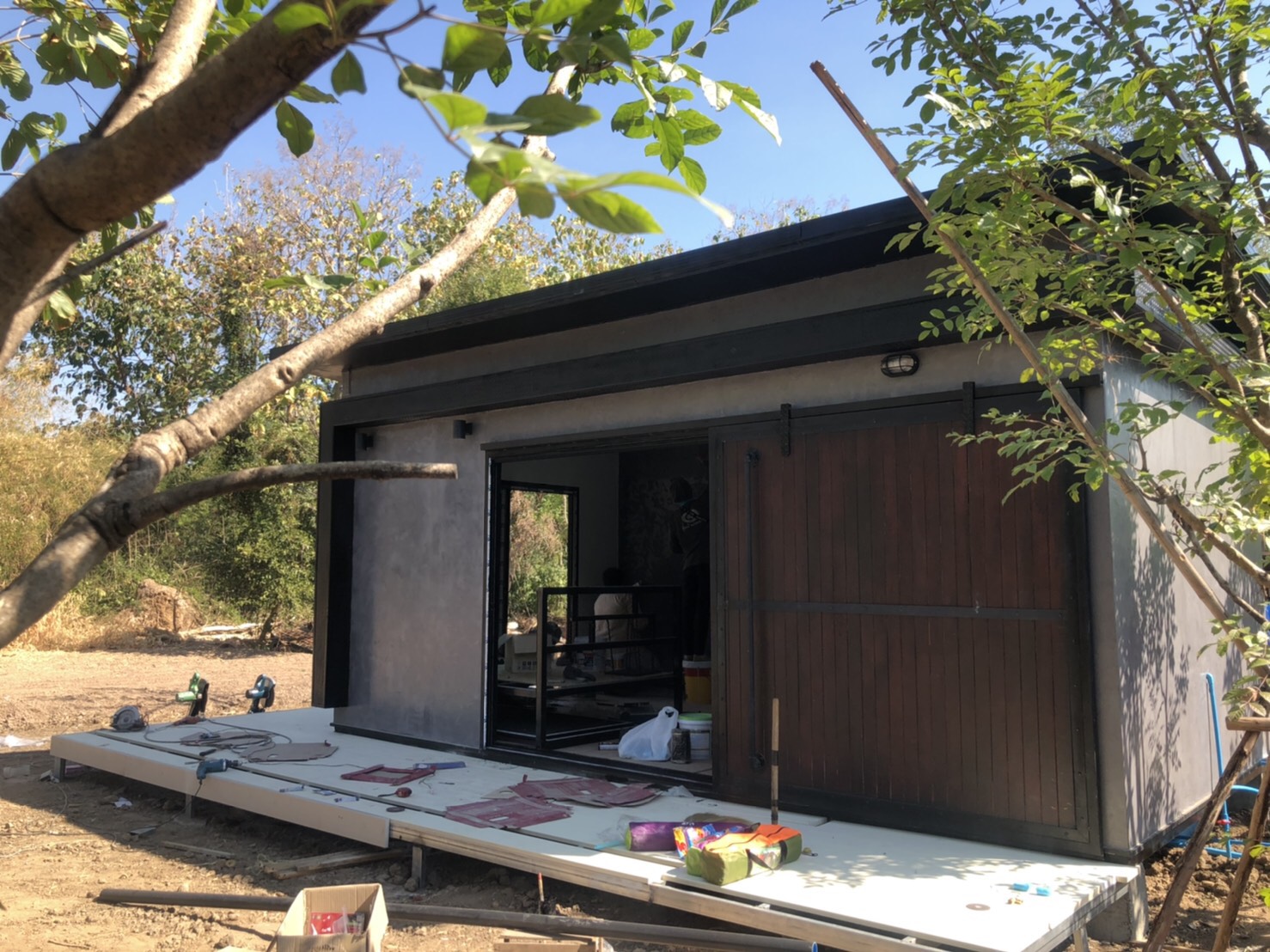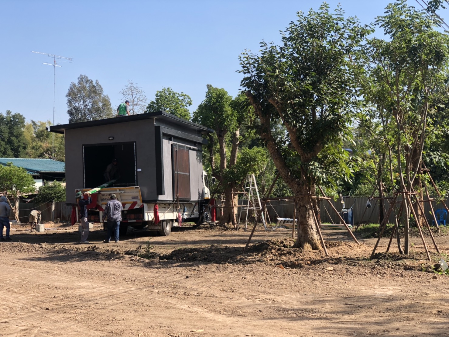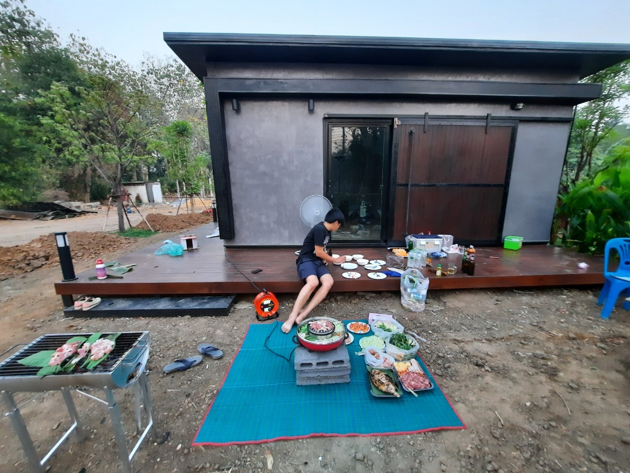 กว่าจะเอาบ้านเข้าได้ก็ลุ้นกันทีเดียว ขั้นตอนต่อไปก็เป็นการฟิตติ้งบ้านและต่อเติมระเบียงและไฟฟ้า