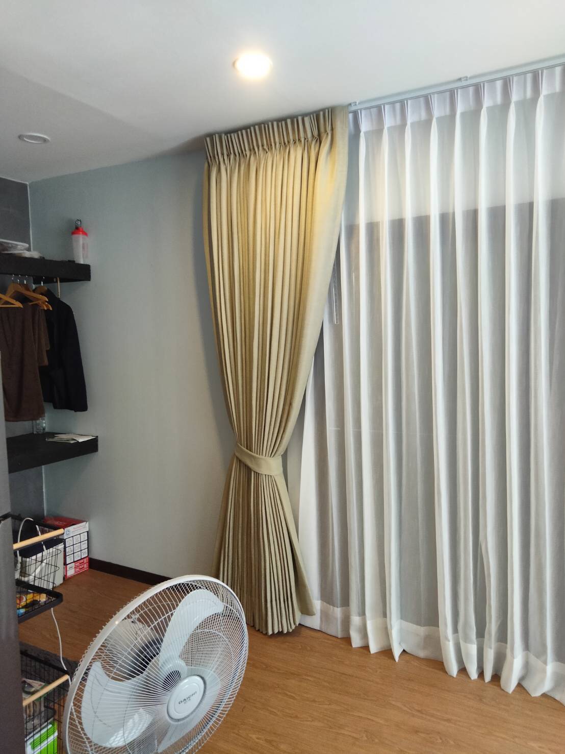 ผ้าม่านเรากลัวห้องจะดูเล็กเลยเอาสีอ่อนๆหวานๆลดความดุลงหน่อย