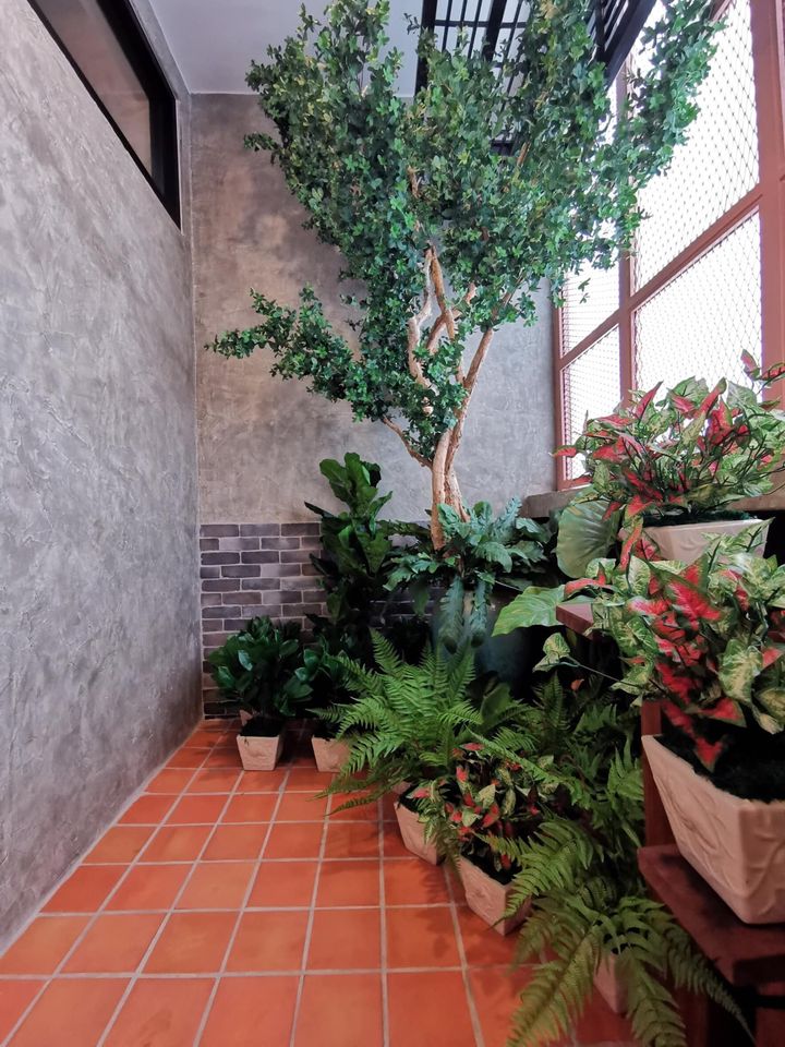 การจัดสวนในครั้งนี้ เจ้าของบ้านเลือกจัดในพื้นที่ระเบียงของห้อง ซึ่งมีพื้นที่กว้างพอประมาณ โดยมีหน้าต่างบานใหญ่พร้อมลวดที่คอยให้แสงสว่างมาภายในพื้นที่ระเบียง