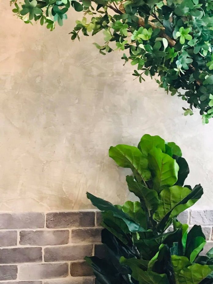 บริเวณมุมห้องเลือกตกแต่งด้วยไม้ต้นใหญ่ที่จัดวางในกระถางทรงรี ด้านล่างจัดวางด้วยไม้ต้นเล็ก ๆ เพื่อให้ส่วนฐานาดูมีความเขียวมากยิ่งขึ้น