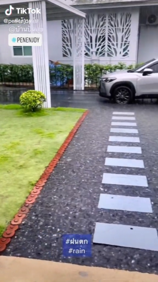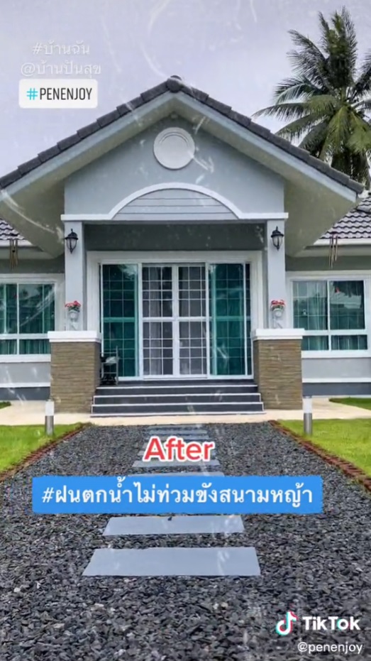 พอวางระบบเรียบร้อย น้ำก็ไม่ท่วมขังพื้นที่สนามหน้าบ้านอีกเลย นับว่าเป็นไอเดียที่น่าสนใจมาก