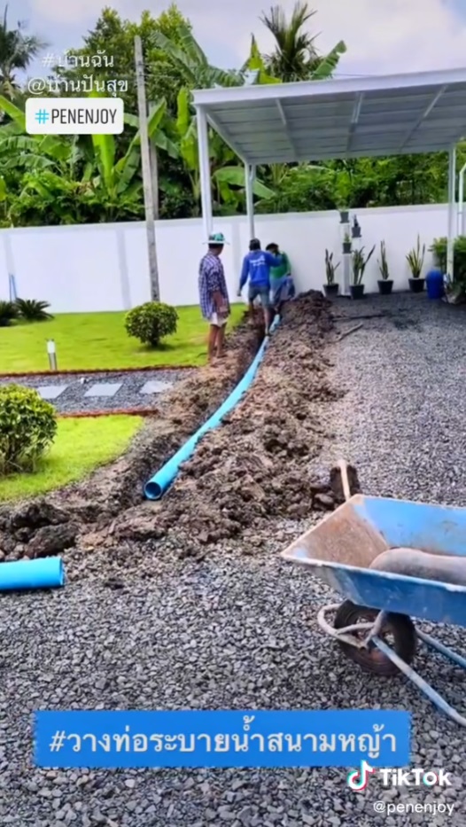@penenjoy วางท่อระบายน้ำรอบสนามหญ้าหน้าบ้าน และรอบบ้าน #ท่อระบายน้ํา #บ้านฉัน #สร้างบ้าน #tiktokhome #ปลอดภัย #tiktok #ไอเดีย #เรื่องบ้าน #ความรู้ #ฝนตก