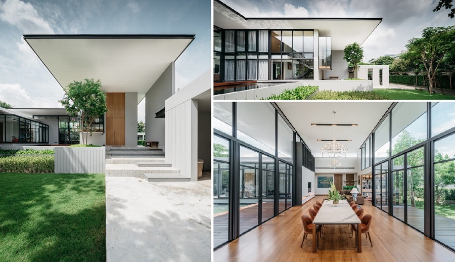 สถาปนิกใช้ข้อดีจากธรรมชาติอย่างเต็มพิกัด โดยการออกแบบให้มีหน้าต่างกระจกบานใสอยู่โดยรอบ เพื่อเปิดให้เห็นทิวทัศน์สวนสีเขียวรอบด้าน และให้แสงแดดและอากาศถ่ายเทเข้ามายังพื้นที่ใช้งานภายในบ้านได้อย่างทั่วถึง ช่วยประหยัดการใช้พลังงานไฟฟ้า ลดค่าใช้จ่ายได้อีกจำนวนหนึ่ง เรียกว่าเป็นบ้านที่ได้รับการออกแบบได้อย่างมีประสิทธิภาพ