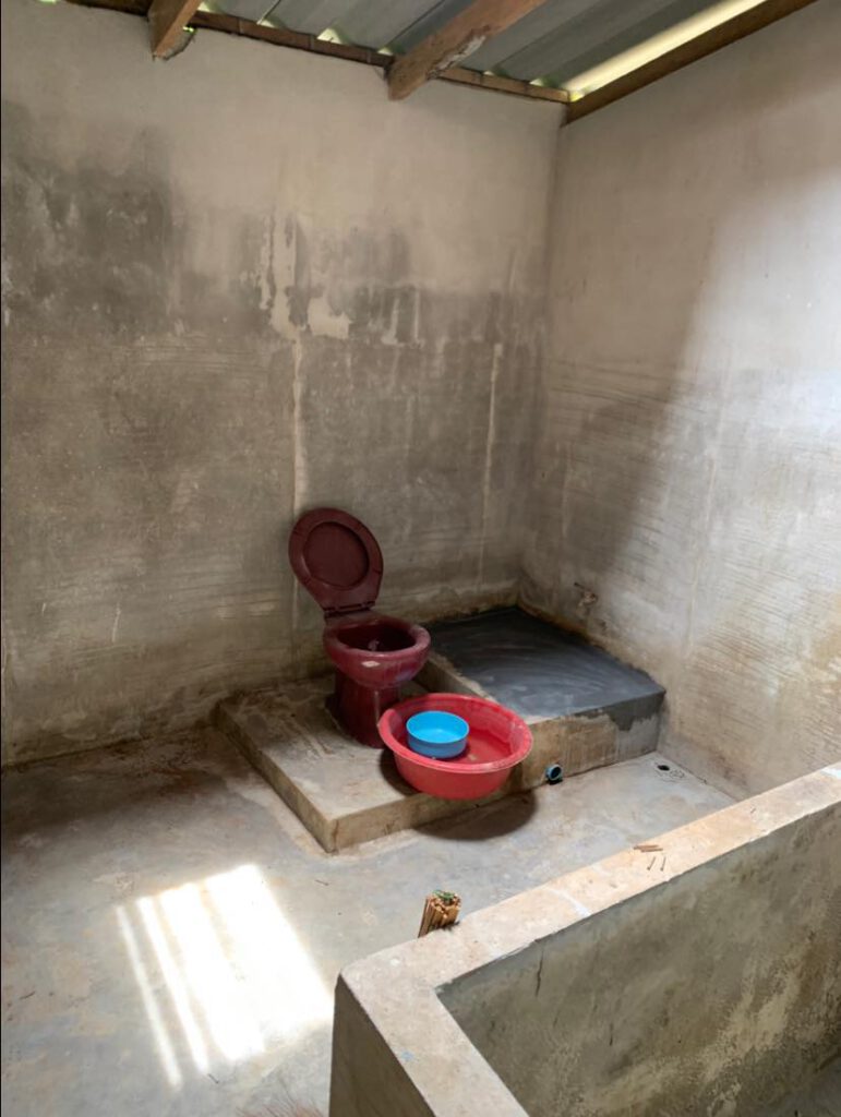 ส่วนสภาพห้องน้ำเป็นปูน หลังคามุงกระเบื้องแบบทั่วๆ ไป ตามชนบทในไทยนี่แหละ
