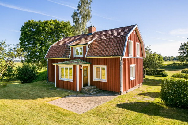 บ้านหลังนี้ทาสีภายนอกด้วยสีแดง ทรงคอกม้า บริเวณหลังคามีปล่องไฟ ให้กลิ่นอายแบบชนบทได้ดี ทางเข้าบ้านจะเป็นห้องเล็กๆ ดูน่ารักทีเดียวครับ ลานหินบ้านเรียบๆหน้าบ้านไม่ตกแต่งอะไรมากนัก
