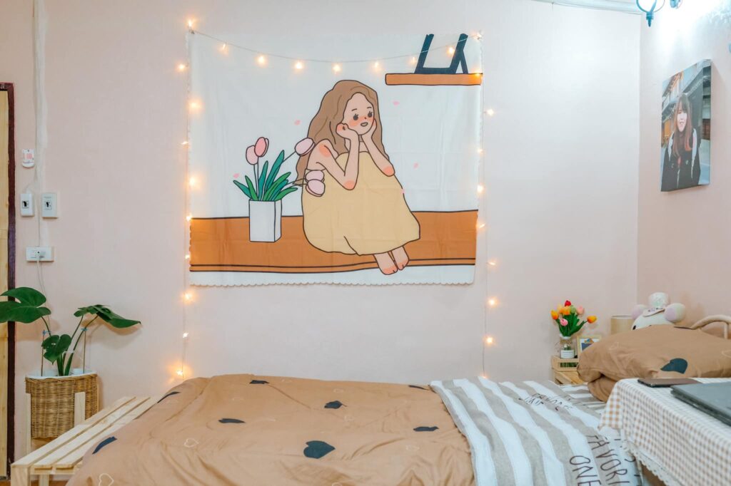 ผ้าติดผนังพร้อมไฟประดับ 229฿ : https://shopee.co.th/product/243190834/6136117014…