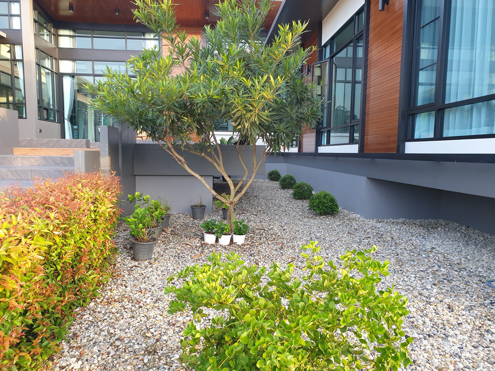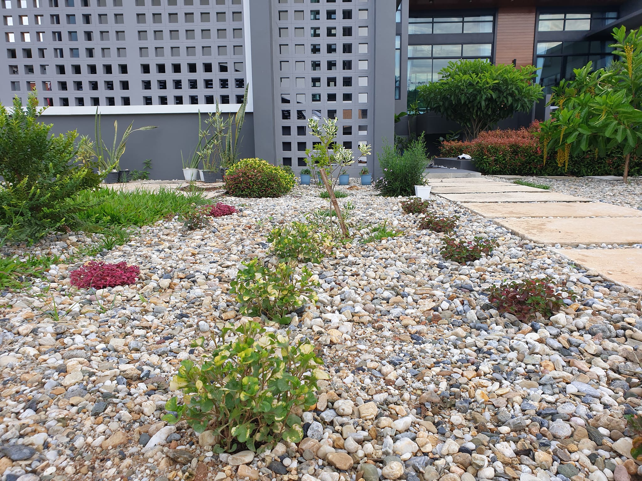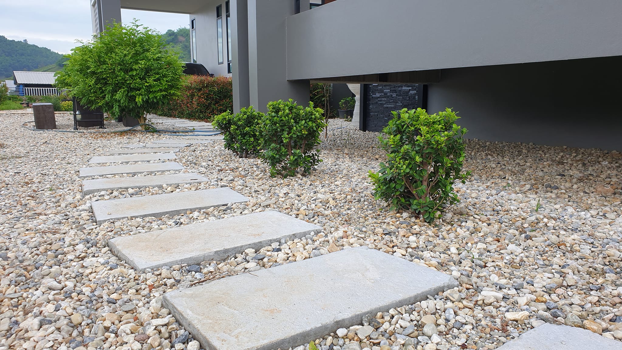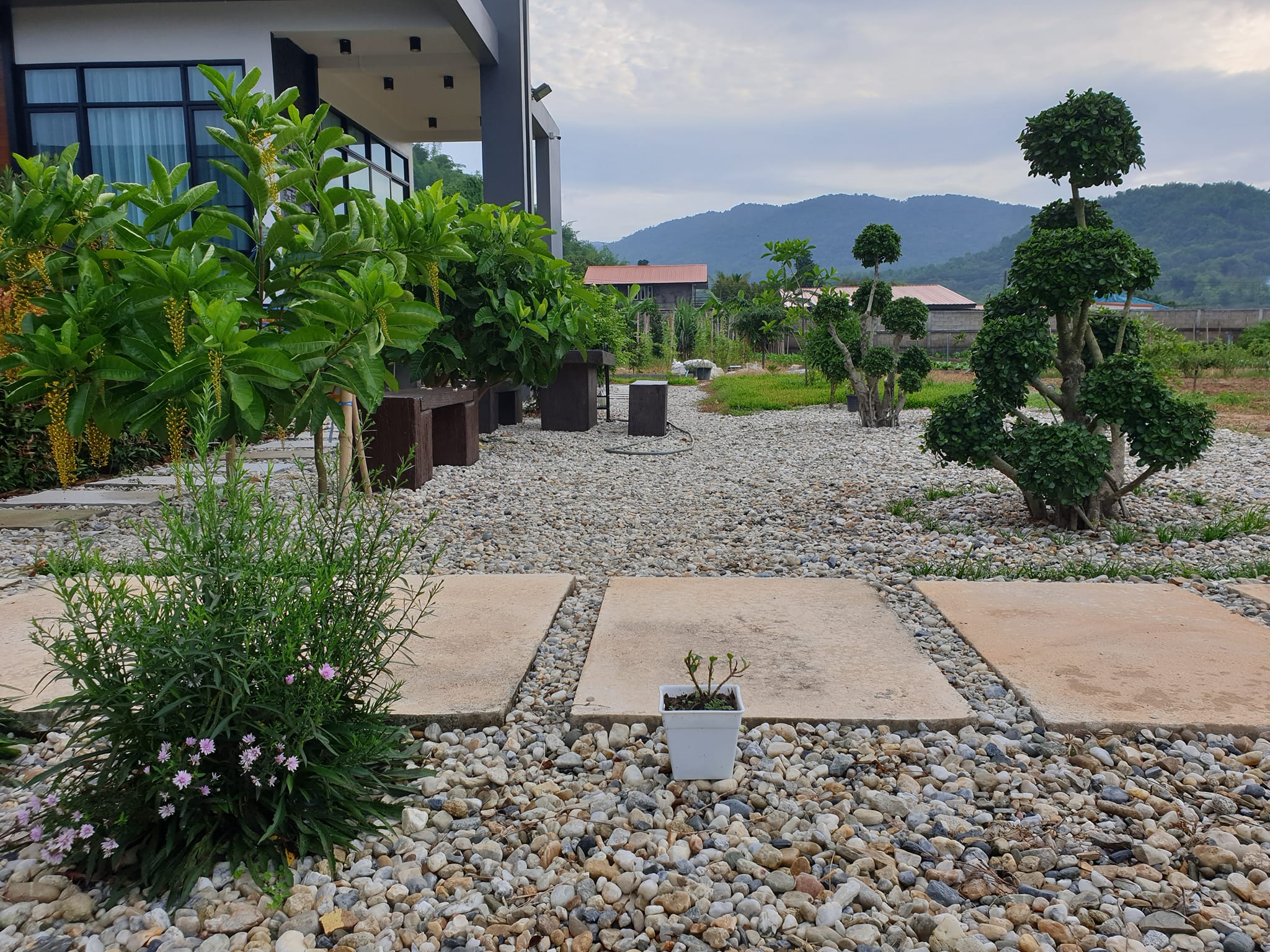 พอปรับพื้นดินด้วยหินกรวด ทำให้ภูมิทัศน์ดีสวยงามและสะอาดตาขึ้นมากกว่าเป็นแบบพื้นดินธรรมดา