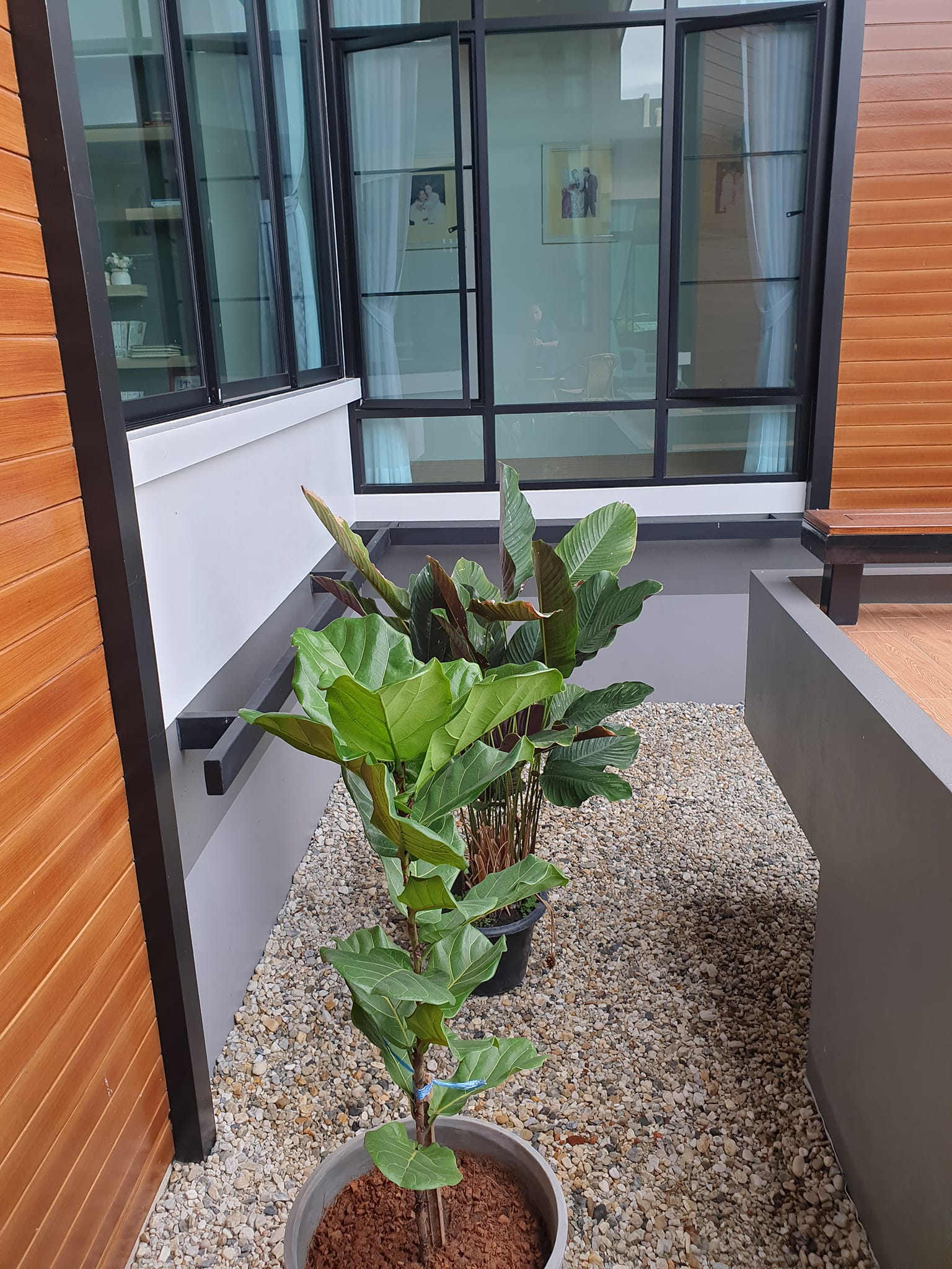 จากนั้นก็สามารถนำเอากระถางต้นไม้ต่าง ๆ มาวางประดับตกแต่งก็ได้แล้ว