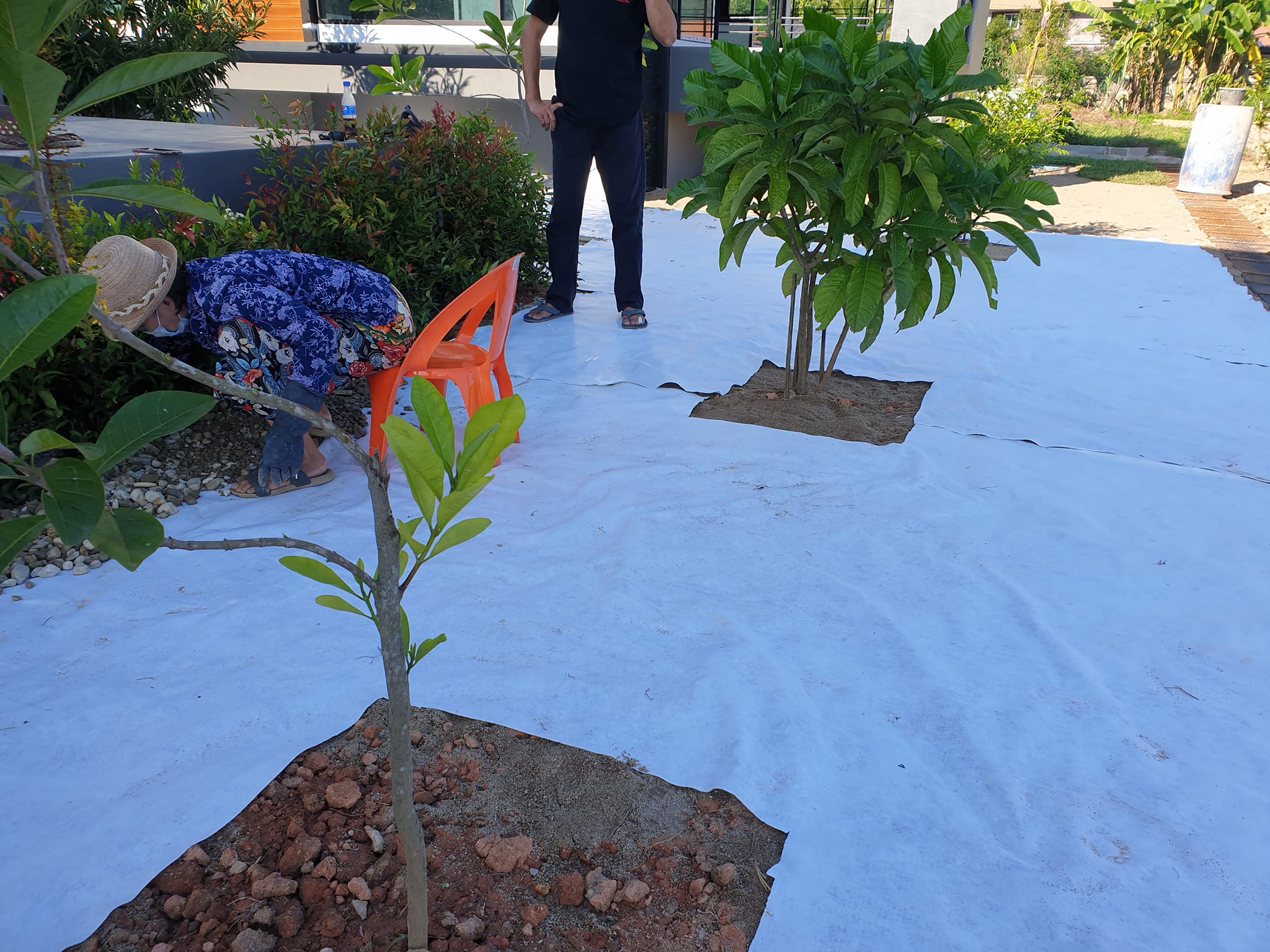 ส่วนวิธีโรยหินกรวดก็ง่ายมาก โดยเริ่มแรกจะต้องปูพื้นด้วยพลาสติกเสียก่อน เพื่อป้องกันไม่ให้หินกรวดแม่น้ำจมลงไปในดิน