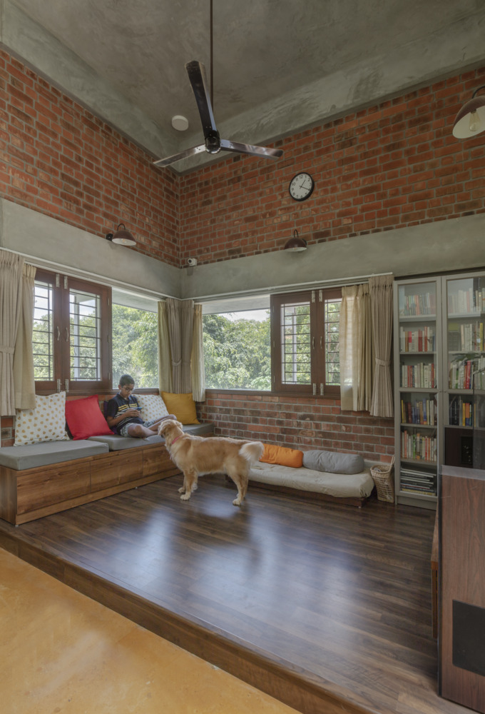 นอกจากนี้ จุดหนึ่งที่ดึงดูดสายตาตั้งแต่นอกบ้านเลย คือ ผนังอิฐโชว์แนวที่ทำให้บ้านดูมีเสน่ห์ ทั้งโทนสีน้ำตาลแบบนี้ยังเข้ากับบรรยากาศของธรรมชาติรอบ ๆ บ้านอีกด้วย