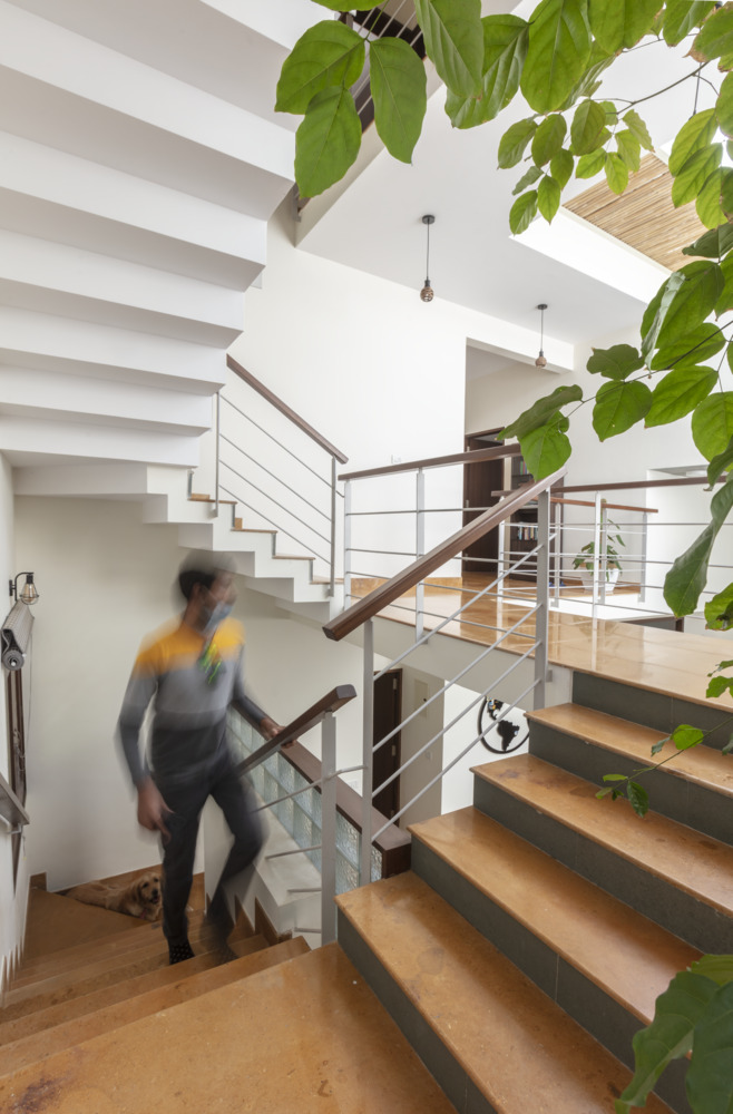 แต่ละชั้นของบ้านมีแสงสว่างสาดส่องถึง พร้อมกับมีต้นไม้ที่ถูกตกแต่งเพื่อสร้างความสดชื่น