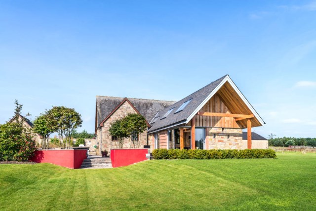 ตัวบ้านโครงสร้างอคนกรีตและไม้ แต่ตกแต่งให้เด่นชัดกับผนังไม้และอิฐโชว์แนว ลวดลานเอกลักษณ์ สีสวย ผสมเข้ากับหลังคาทรงจั่วบนโครงสร้างไม้ แบบสมัยร่วมสมัย มีความภูมิฐานอีกด้วย มาพร้อมเฉลียงหน้าบ้าน ยกพื้นสูงพองาม
