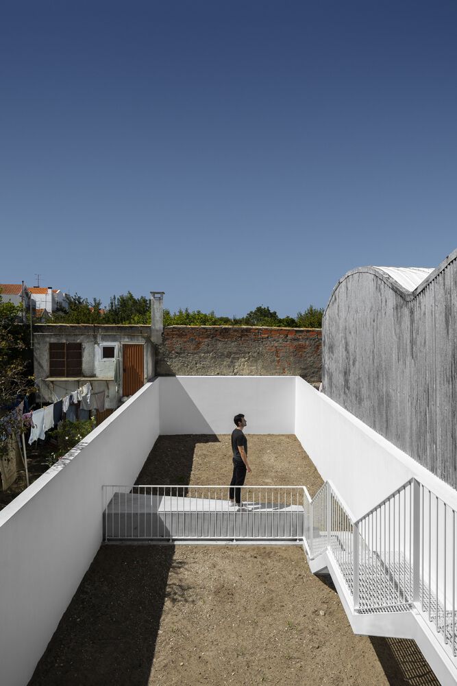 พื้นที่ด้านหลังบ้านที่เปิดโล่งนั้น มีลักษณะเป็นลานดินกว้าง ๆ โดยจะมีบันไดและทางเดินที่เชื่อมต่อบริเวณลานและตัวบ้านเข้าไว้ด้วยกัน
