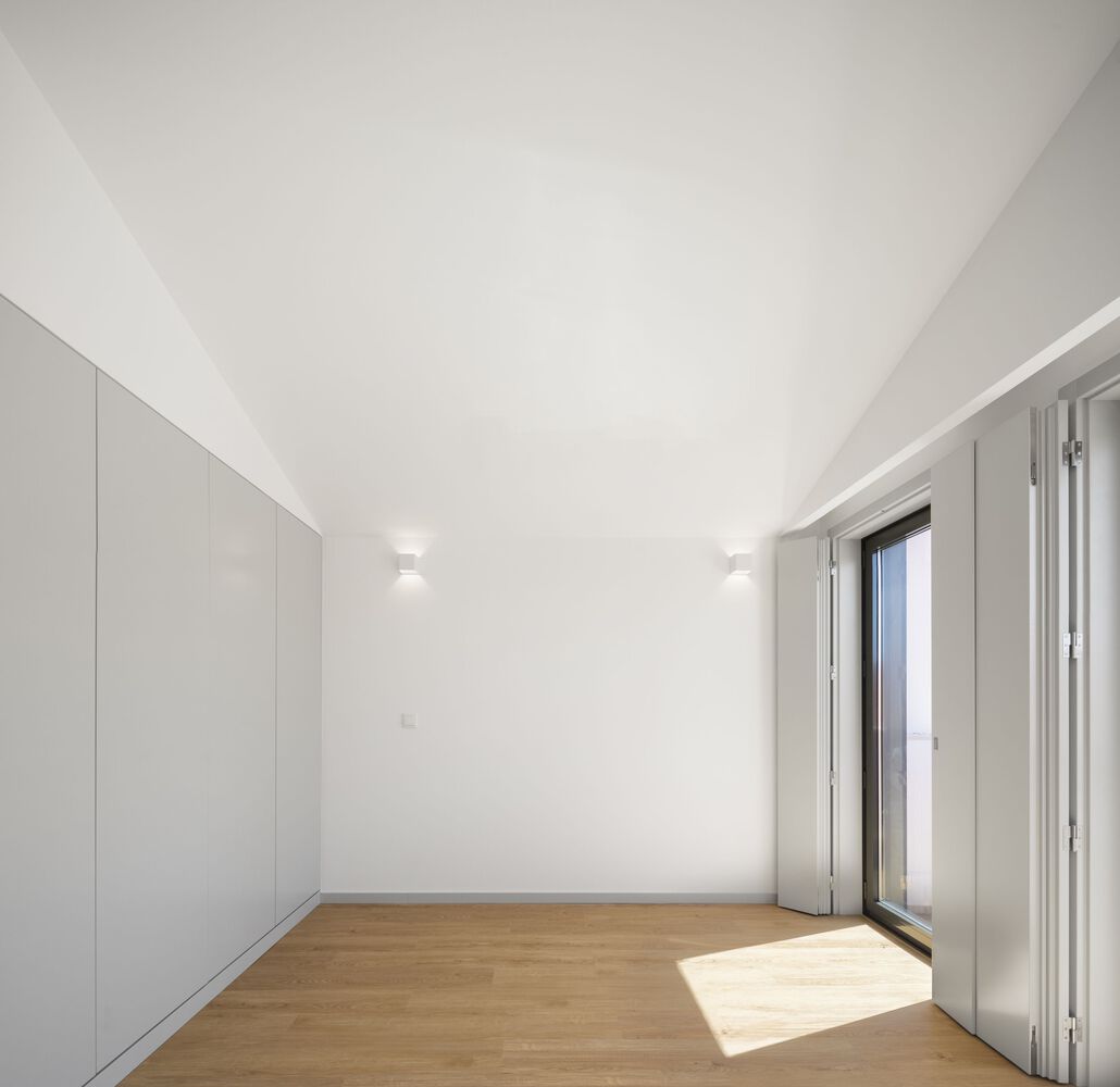 อย่างเช่นห้องนอนห้องนี้ที่ทั้งผนังและเพดานถูกตกแต่งด้วยสีขาวล้วน จึงทำให้มีบรรยากาศที่ปลอดโปร่งไม่อึดอัด ประตูด้านข้างยังช่วยรับเอาแสงจากภายนอกเข้ามาในห้องนอนอีกด้วย