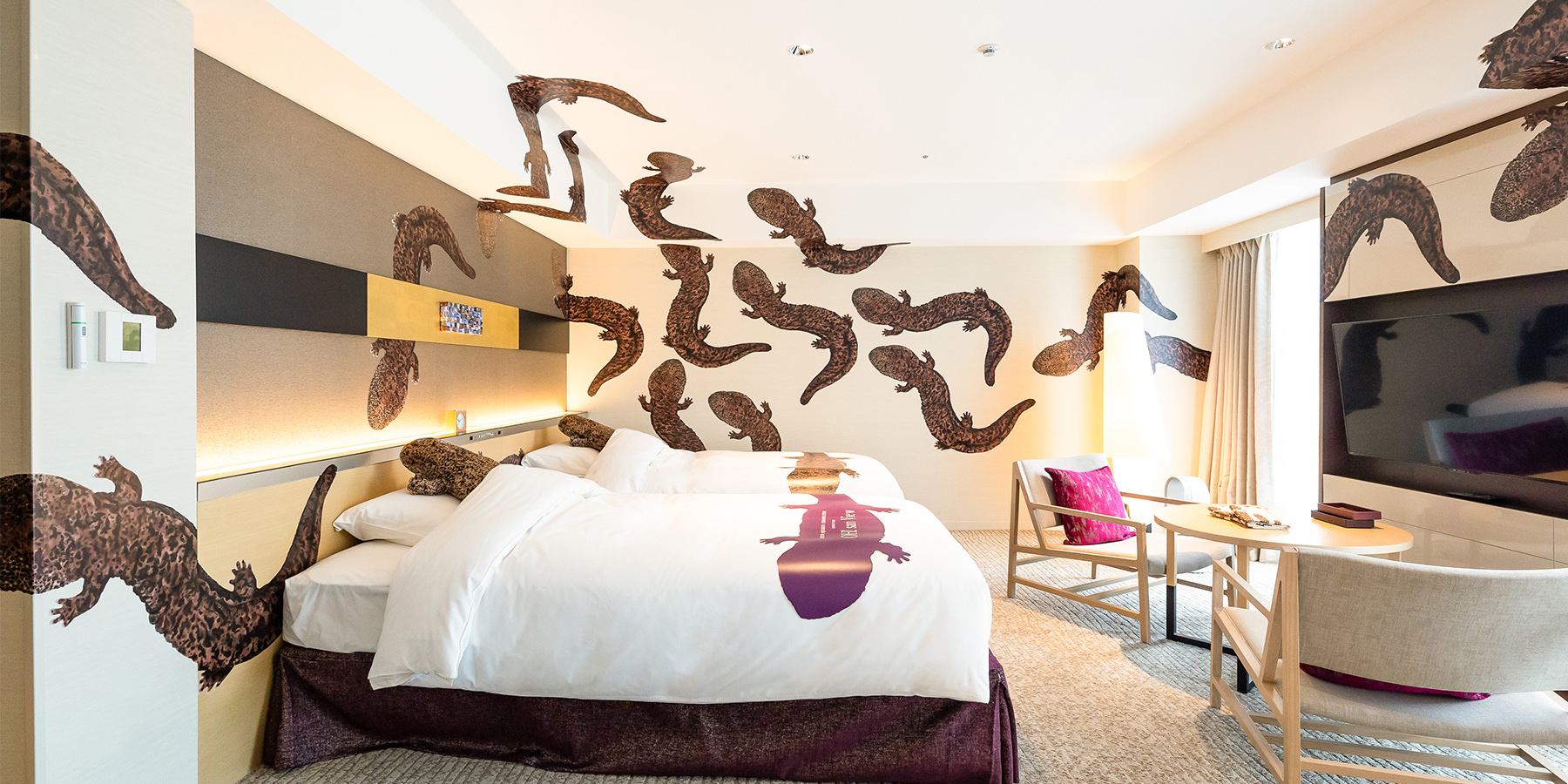 โรงแรมญี่ปุ่นจัดห้องพักพิเศษ ‘ธีมซาลาแมนเดอร์’ ตกแต่งทั่วทั้งห้อง ตัวใหญ่เบิ้มๆ