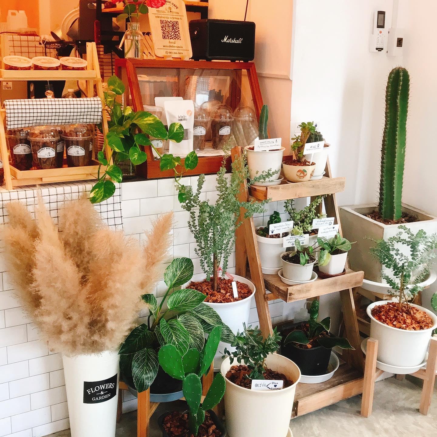 ที่หน้าเคาน์เตอร์ถูกจัดวางด้วยต้นไม้หลากหลายขนาดทั้งพืชขนาดเล็ก ทั้งกระบองเพชร ซึ่งช่วยให้ภายในร้านดูสวยงามสดชื่นขึ้นมากเลยทีเดียว