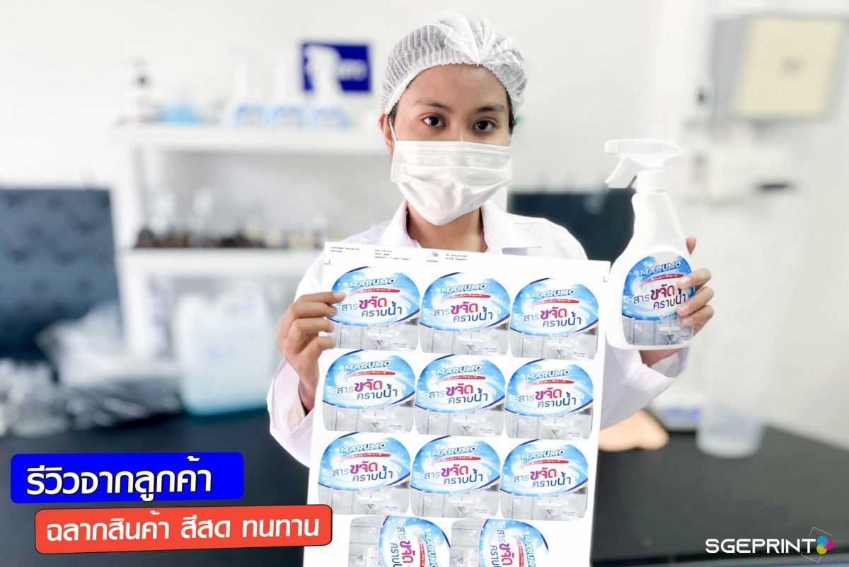 SGE PRINT ได้รับความไว้วางใจจากบริษัท เอสจีอี เคม (ประเทศไทย) จำกัด เจ้าของผลิตภัณฑ์น้ำยาขจัดคราบกระจก ยี่ห้อ MARUMO และ น้ำยาขจัดคราบต่าง ๆ ให้บริการพิมพ์สติ๊กเกอร์ขาวเงา ชนิดกันน้ำพิเศษ ช่วยเพิ่มมูลค่าสินค้า และสร้างการจดจำแบรนด์ได้เป็นอย่างดี ด้วยสีสดสวยงาม มีอายุการใช้งานที่ยาวนาน สีไม่จางหาย ทางลูกค้าได้รับความพึงพอใจเป็นอย่างมาก