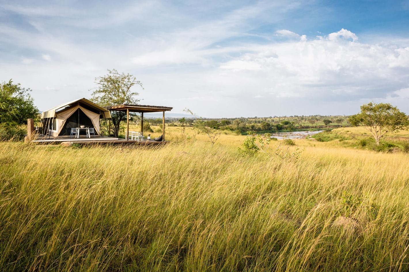 Singita Mara River Tented Camp เป็นแค้มป์ตากอากาศจากประเทศแทนซาเนีย ตั้งอยู่บนท้องทุ่งที่กว้างสุดลูกหูลูกตา สร้างขึ้นด้วยวัสดุธรรมชาติทั้งหมด พลังงานไฟฟ้าของที่พักก็ใช้จากโซล่าเซลล์ทั้งหมด จึงเป็นมิตรกับธรรมชาติ