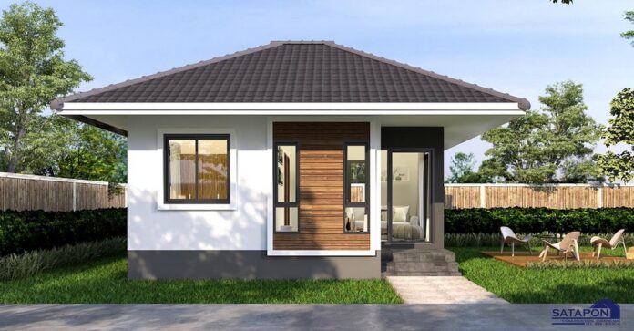 แบบบ้านหลังเล็กสไตล์คอนเทมโพรารีหลังนี้ประกอบไปด้วย 1 ห้องนอน 1 ห้องน้ำ 1 ห้องโถงนั่งเล่น พื้นที่ใช้สอยทั้งหมดประมาณ 32 ตารางเมตร งบก่อสร้างเริ่มต้นที่ประมาณ 350,000 บาท