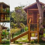 ห้องน้ำตกแต่งอย่างหลากสีสัน แต่คุมโทนหลักด้วยสีน้ำตาล ภายในห้องยังคงติดตั้งกระจกบานใหญ่เพื่อใช้ประโยชน์จากแสงธรมชาติ พื้นที่อาบน้ำกั้นด้วยผ้าม่านลวดลายน่ารัก เช่นเดียวกันกับถังขยะลวดลายดอกไม้