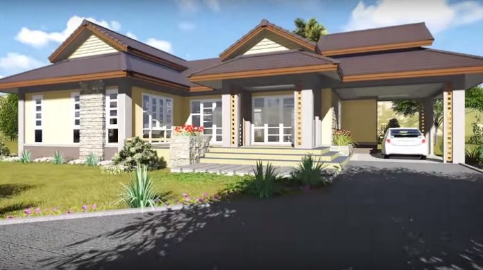 แบบบ้าน TR1-09 ลักษณะบ้านชั้นเดียว หลังคาทรงมนิลาเล่นระดับลดหลั่นกันอย่างสวยงาม ด้านข้างจะเป็นโรงจอดรถในร่มสำหรับคนรักรถ ผนังภายนอกเป็นสีอ่อน ผสมผสานกับการตกแต่งอิฐ และแต่งขอบสีน้ำตาลได้อย่างลงตัว