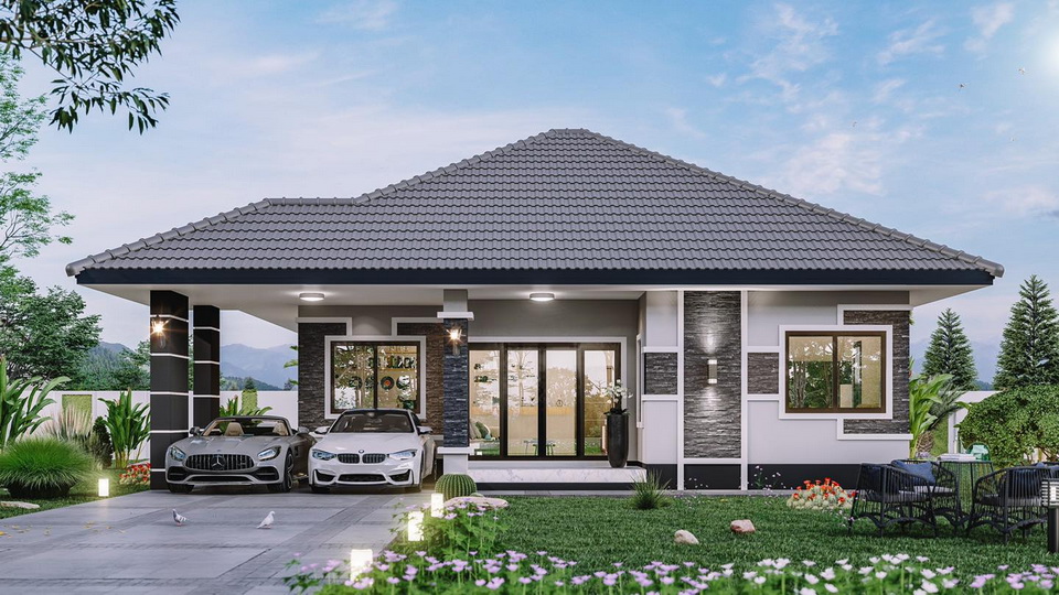 แบบบ้านชั้นเดียวทรงปั้นหยาสไตล์ร่วมสมัย หนึ่งในบ้านจากโครงการ Charika Home (ชาริกา โฮม) จังหวัดเชียงใหม่ โดดเด่นที่ความหรูหรา การออกแบบที่ทันสมัย พร้อมพื้นที่ใช้สอยที่อำนวยความสะดวกการใช้ชีวิตประจำวันได้อย่างลงตัว ตามมาชมรายละเอียดกันเลยครับ