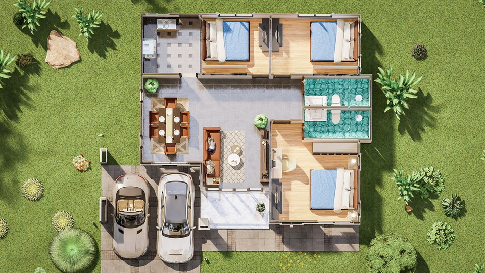 ปล. งบประมาณในการสร้างบ้านแต่ละหลังที่แตกต่างกันนั้น ขึ้นอยู่กับหลายปัจจัย ไม่ว่าจะเป็นพื้นที่ก่อสร้าง คุณภาพหรือเกรดของวัสดุ การว่าจ้างช่างฝีมือหรือผู้รับเหมา ฯลฯ ดังนั้น ข้อมูลของบ้านหลังนี้จึงมีไว้เพื่อเป็นตัวอย่างให้ศึกษาเท่านั้น ไม่สามารถนำไปเป็นมาตรฐานในการสร้างบ้านอื่นๆ ที่มีสภาพปัจจัยที่แตกต่างกันได้