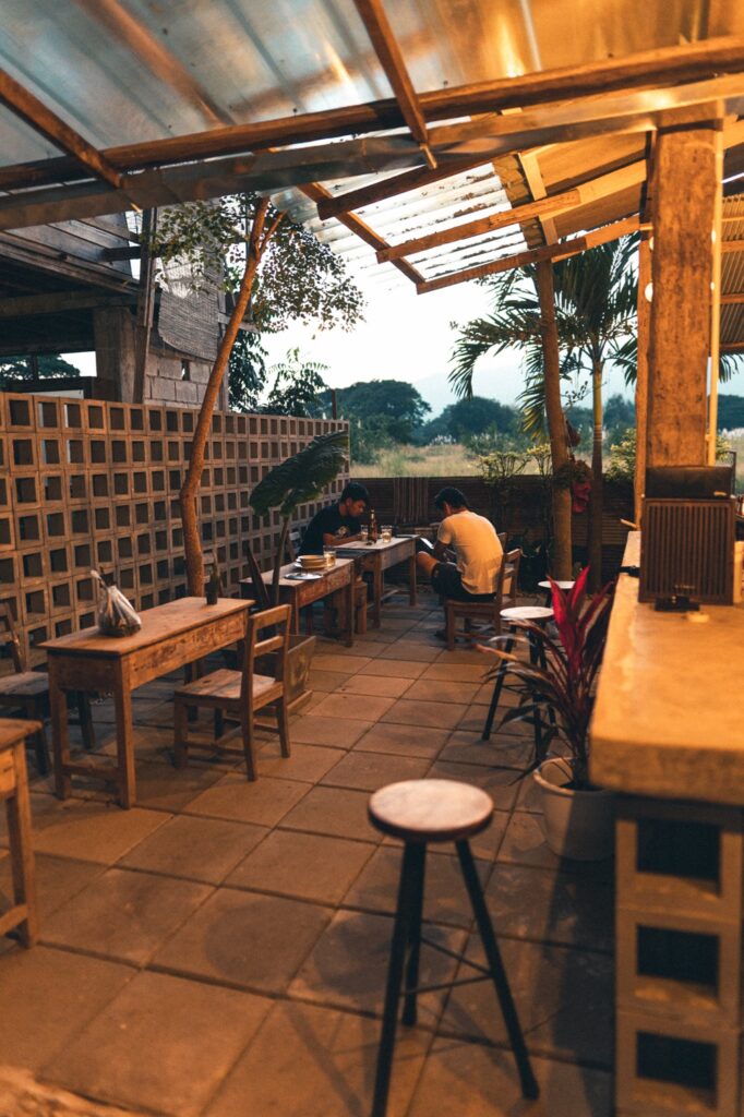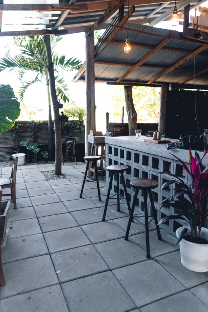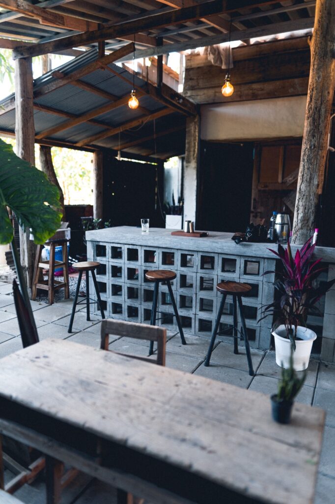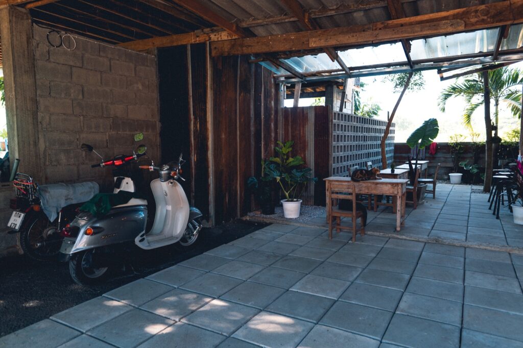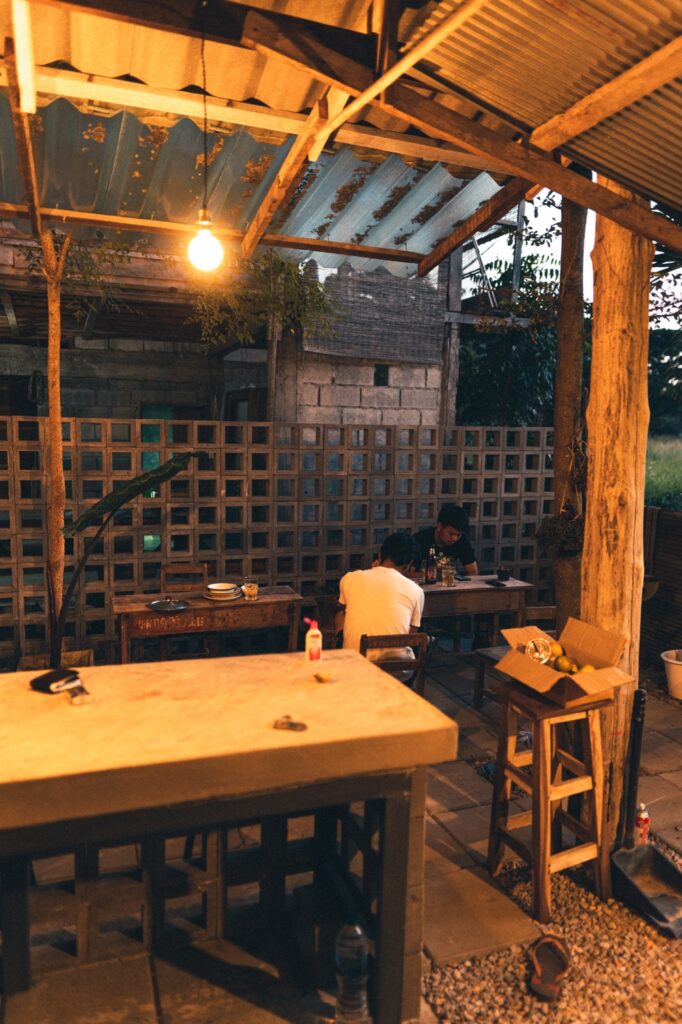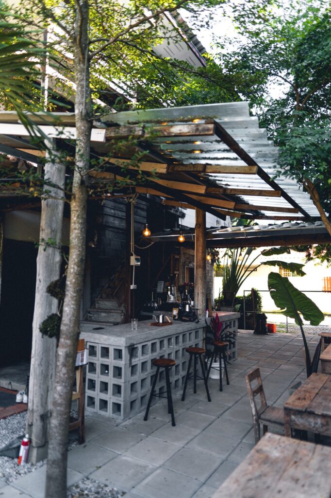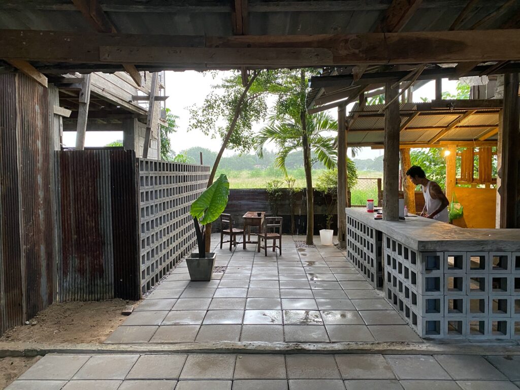 วัสดุที่เลือกใช้ครับ สังกะสีเก่า บล็อกช่องลม แผ่นบล็อกปูพื้น 40×40 โต๊ะเก้าอี้นักเรียนเก่าจากร้านไม้เก่ามือสอง