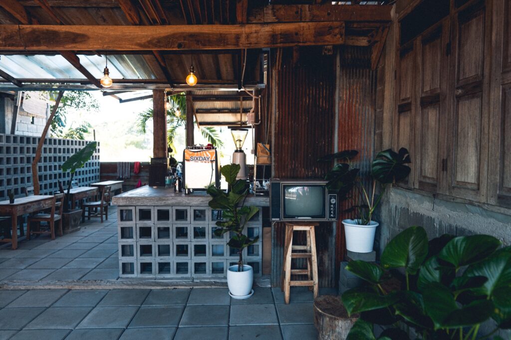 ชื่อร้าน. SIXDAY COFFEE (Sixday coffee,Oneday party) ร้านยังไม่ 100%นะครับเหลือตกแต่งอีกนิดหน่อย ส่วนมากใช้สีเดิมๆของวัสดุไม่มีการทาสีครับ