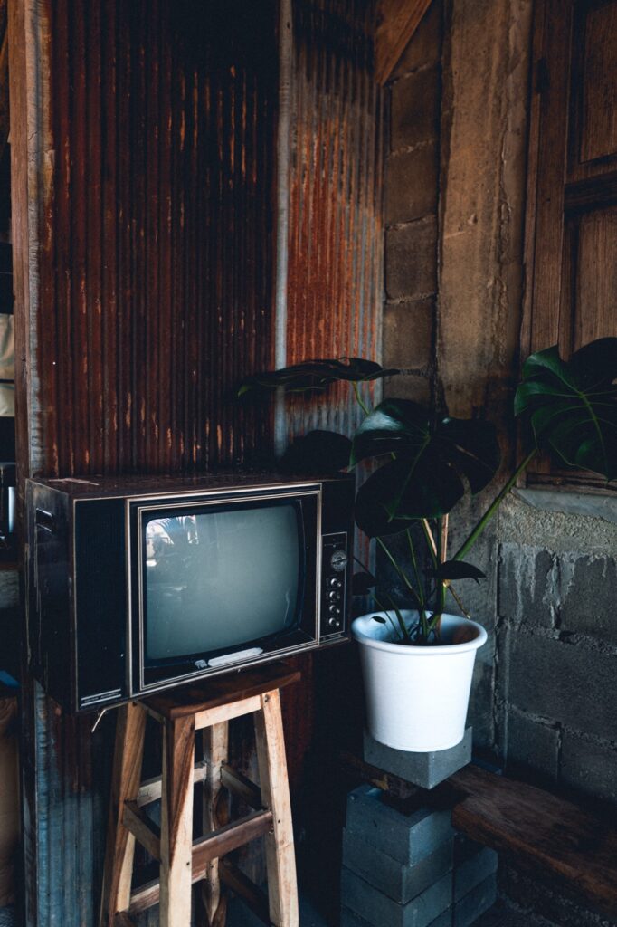 ทีวีเก่า อยู่ในห้องเก็บของที่บ้านครับ ยกมาแต่งร้านและจะวางหนังสือบนทีวี