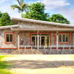 สำหรับแบบบ้านหลังนี้เป็นแบบบ้านขนาดสองชั้น ฐานของบ้านถูกยกขึ้นเตี้ยๆ ดีไซน์ของบ้านเป็นแบบทรงยุโรปในสไตล์คันทรี จึงให้ความสวยงามคลาสสิกสุดๆ โดยรายละเอียดการตกแต่งนั้น ผนังภายนอกเป็นผนังไม้เทียมที่ตกแต่งในโทนสีขาวครีม ตัดกับสีแดง มีหลังคาทรงสโลป
