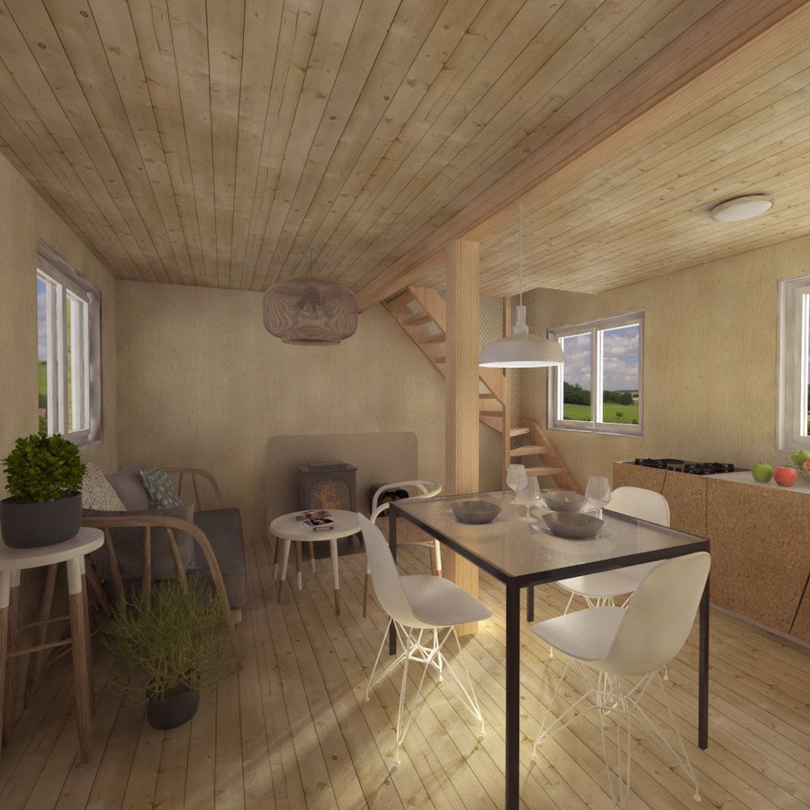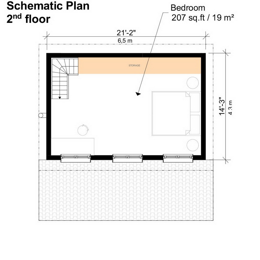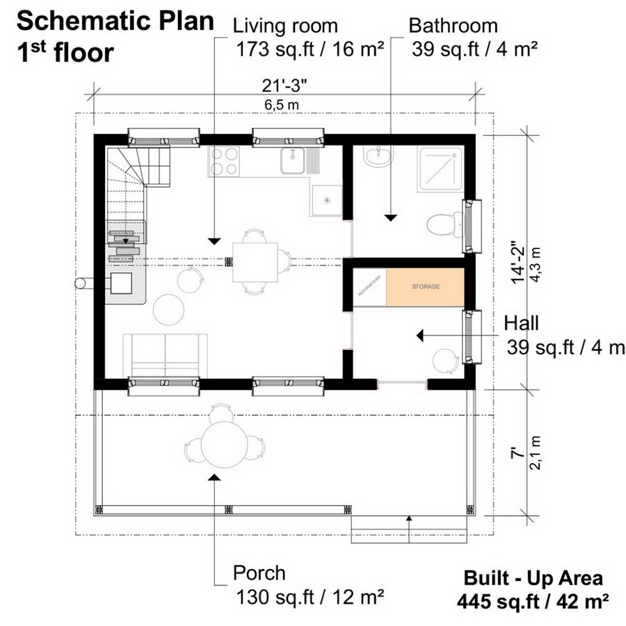 บ้านทรงยุโรปหลังน้อยขนาดสองชั้นหลังนี้ประกอบไปด้วย 1 ห้องนอน 1 ห้องน้ำ 1 ห้องโถงที่แบ่งเป้นห้องครัวและห้องนั่งเล่น 1 ห้องเก็บของ พร้อมระเบียงหน้าบ้าน พื้นที่ใช้สอยประมาณ 55 ตารางเมตร